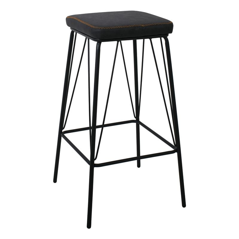 PANTON Σκαμπό BAR, Μέταλλο Βαφή Μαύρο, PU Απόχρωση Vintage Black 43x43x76cm