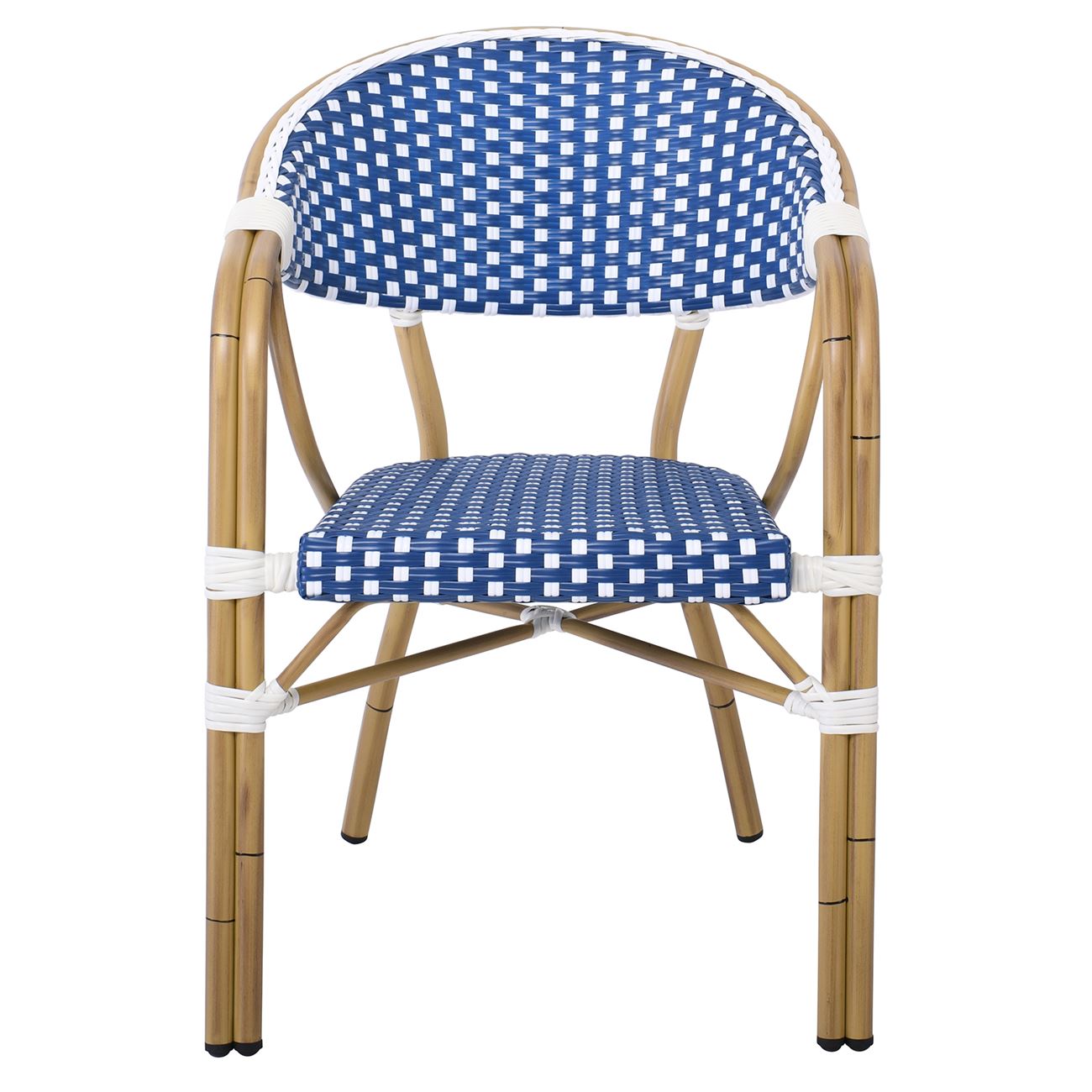 PARIS Πολυθρόνα Bistro Αλουμίνιο Φυσικό, Wicker Άσπρο – Μπλε, Στοιβαζόμενη (Ε-00024033)