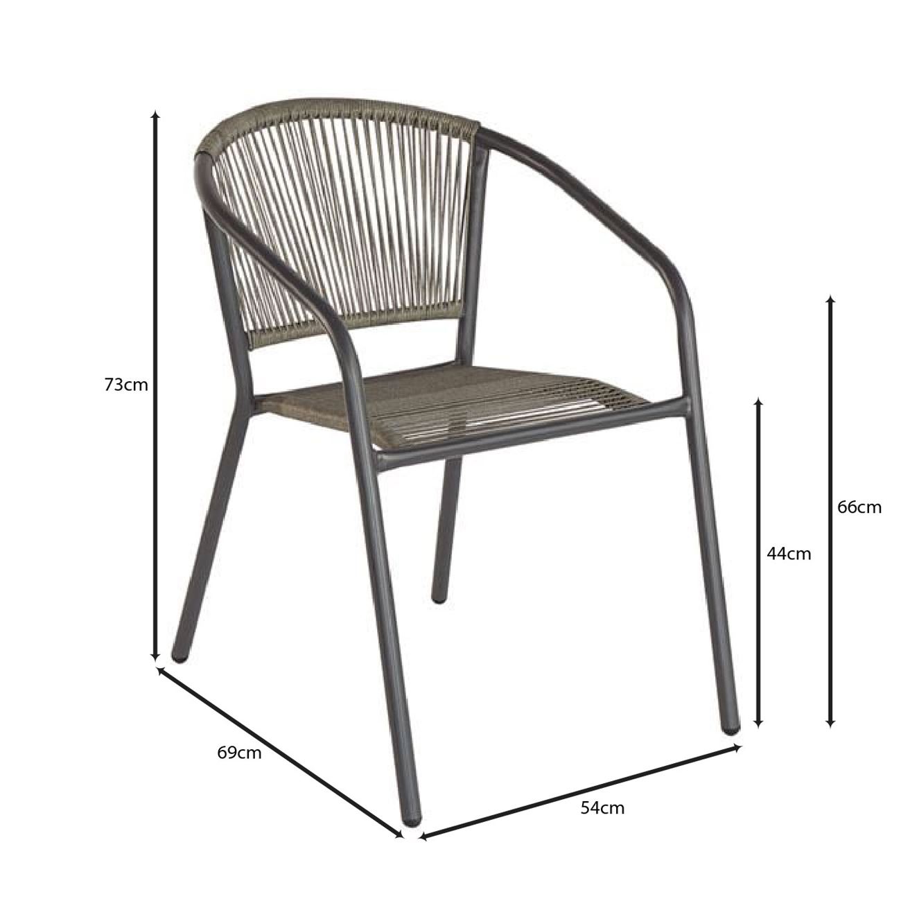 PATTY Πολυθρόνα Στοιβαζόμενη Κήπου, Μέταλλο Βαφή Ανθρακί, PE Rattan Γκρι 54x69x73cm