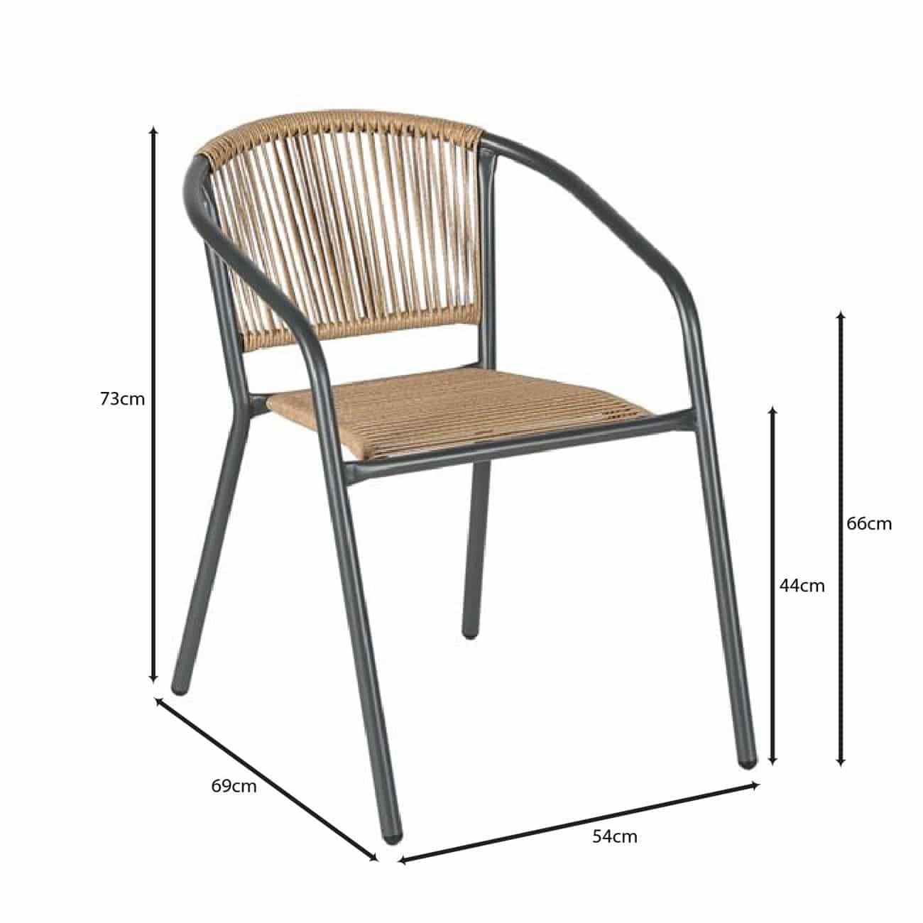 PATTY Πολυθρόνα Στοιβαζόμενη Κήπου, Μέταλλο Βαφή Ανθρακί, PE Rattan Φυσικό 54x69x73cm