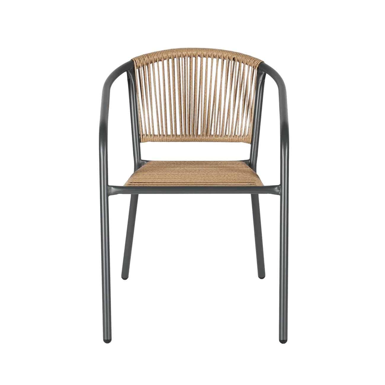 PATTY Πολυθρόνα Στοιβαζόμενη Κήπου, Μέταλλο Βαφή Ανθρακί, PE Rattan Φυσικό (Ε-00026036)