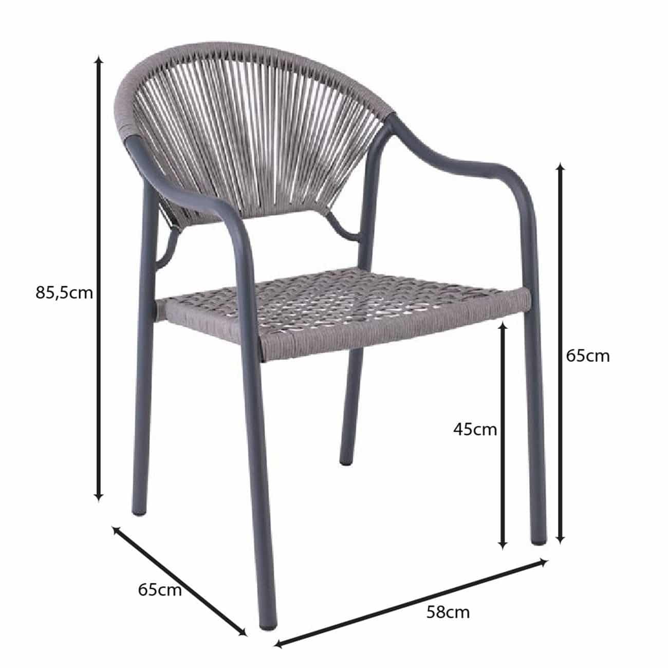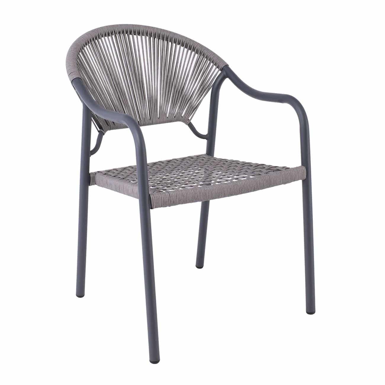 POLIS Πολυθρόνα Βεράντας-Κήπου Μέταλλο Βαφή Ανθρακί, Rope Wicker Γκρι, Στοιβαζόμενη (Ε-00025773)
