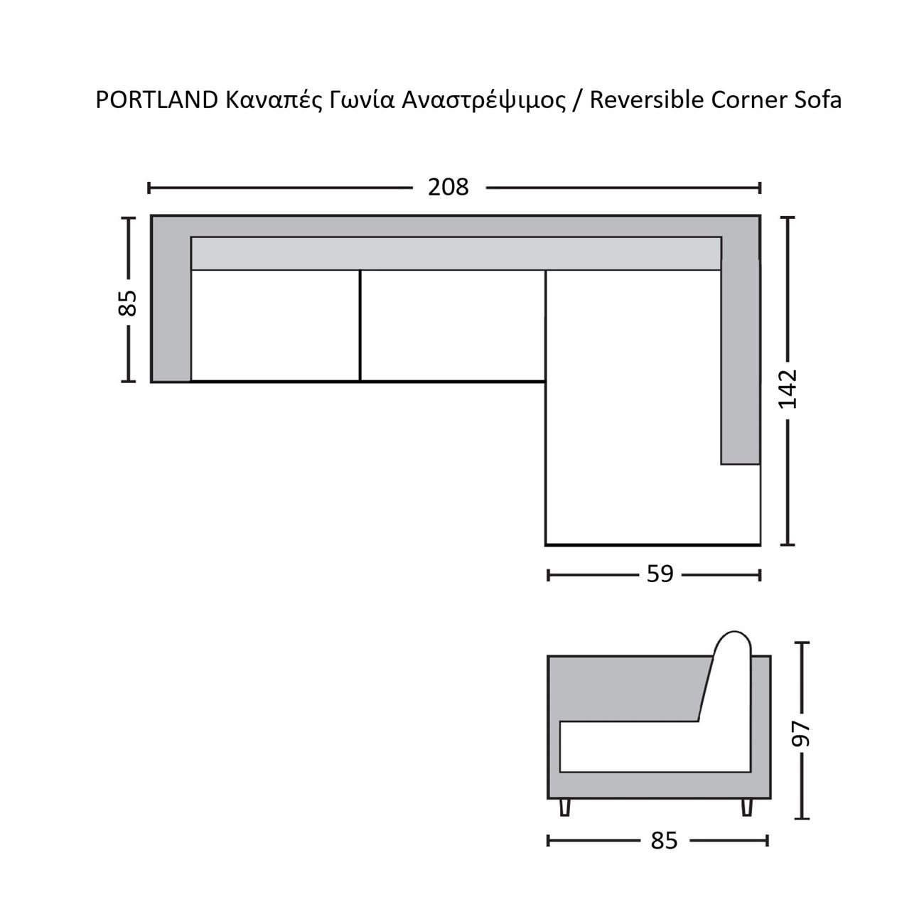 PORTLAND Καναπές Γωνία Αναστρέψιμος Σαλονιού – Καθιστικού