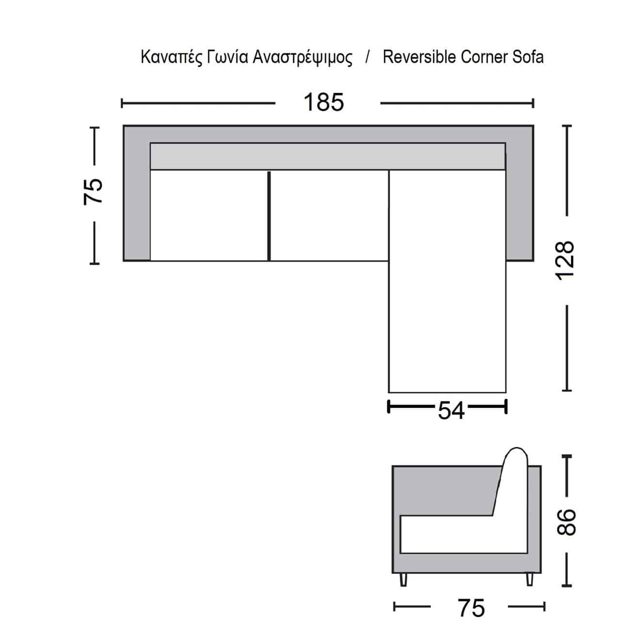 Διαστάσεις: 185x128x75cm H.86cm