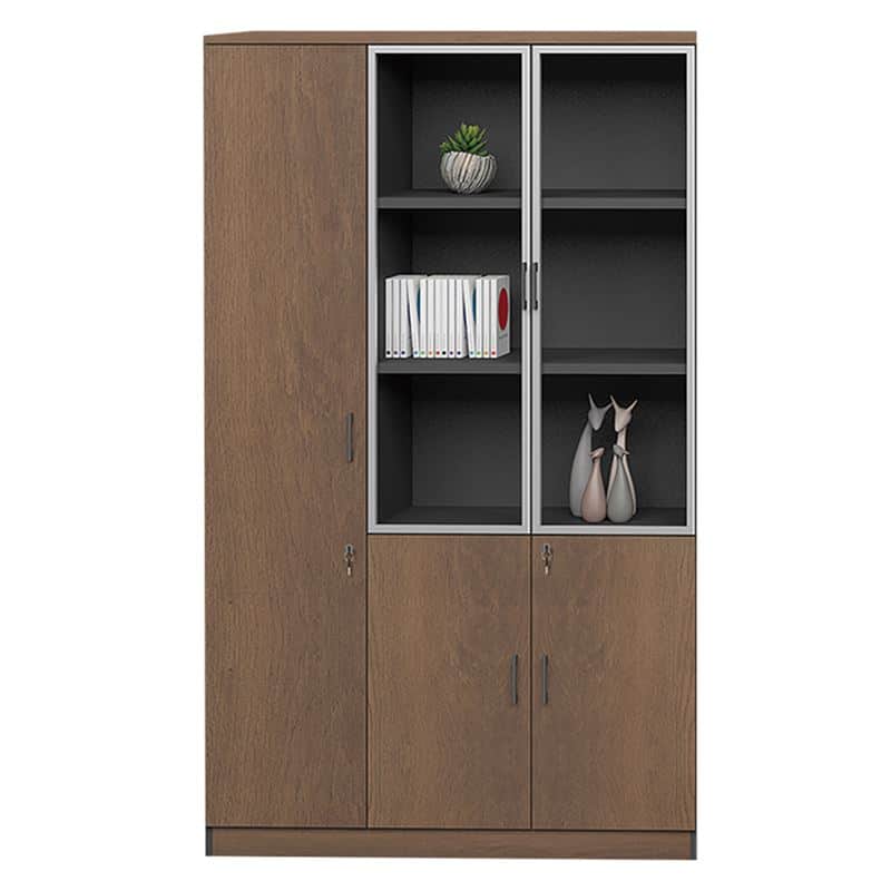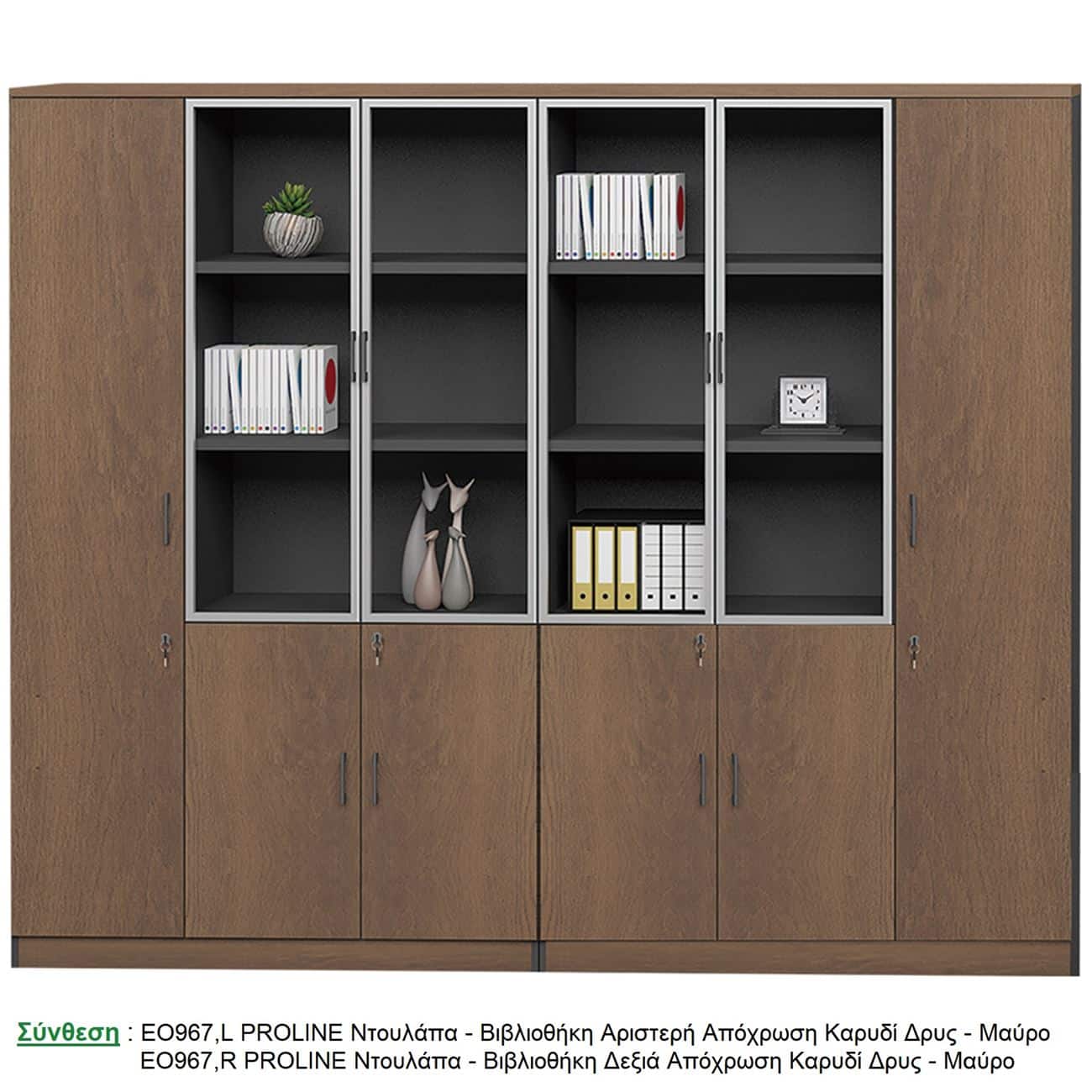 PROLINE Ντουλάπα – Βιβλιοθήκη Γραφείου Αριστερή, Πεντάφυλλη (2 Γυάλινα) Καρυδί Δρυς-Μαύρο (Ε-00020611)