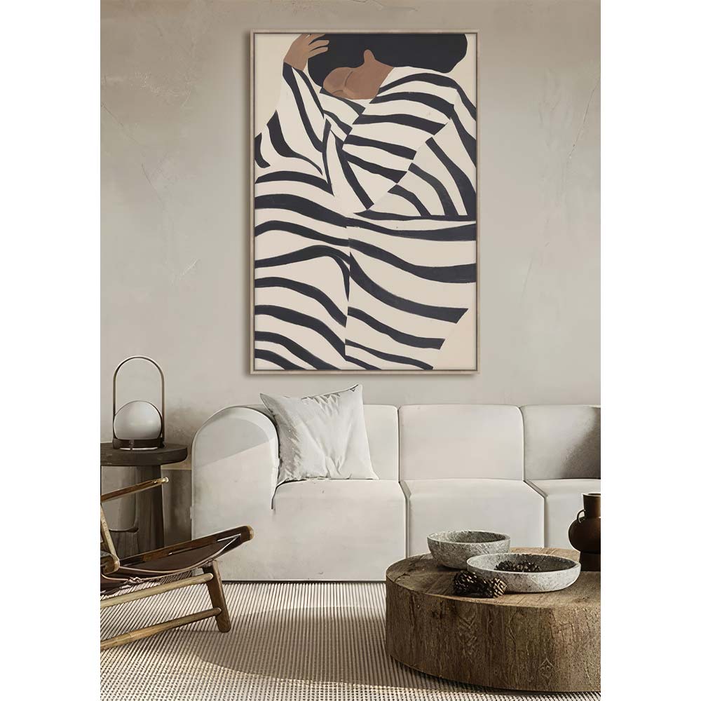 Ο πίνακας QUIET GRACE εκφράζει μια στιγμή ισορροπημένης, ήρεμης παρουσίας. Οι καθαρές γραμμές και η παλέτα μπεζ–μαύρου δημιουργούν μια αισθητική διακριτικής πολυτέλειας. Ιδανικός για καθιστικά, υπνοδωμάτια, αλλά και για boutiques ή χώρους υψηλής αισθητικής.