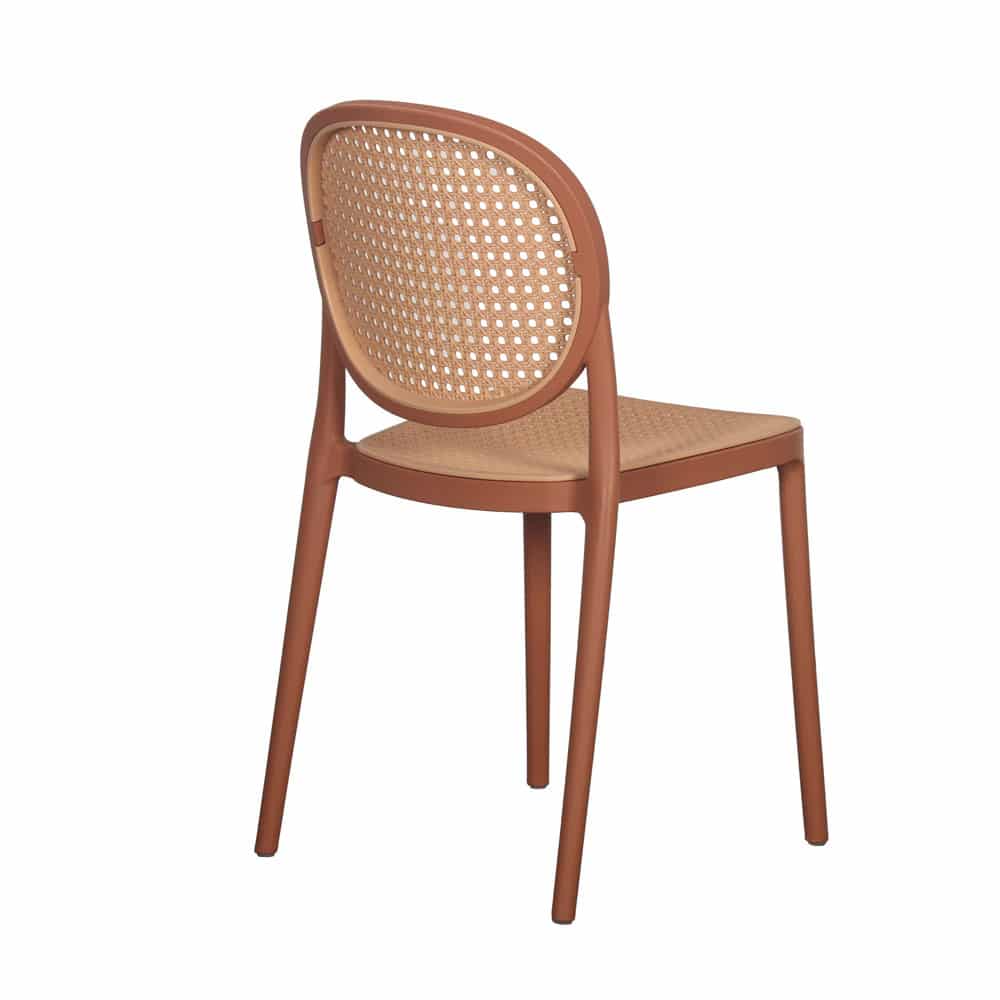 Η καρέκλα Ratti ξεχωρίζει για το κομψό design και την ανθεκτική κατασκευή της, ιδανική τόσο για εσωτερικούς όσο και για εξωτερικούς χώρους. Είναι κατασκευασμένη από πολυπροπυλένιο (PP) σε terracotta και φυσική απόχρωση, προσφέροντας μία εκλεπτυσμένη αισθητική που συνδυάζει το κλασικό με το μοντέρνο. Διαθέτει UV προστασία, εξασφαλίζοντας αντοχή στον χρόνο και στις καιρικές συνθήκες, ακόμα και υπό συνεχή έκθεση στον ήλιο.