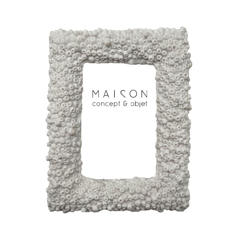 Η κορνίζα REEF B σε διαστάσεις 18x3x22.5cm είναι κατασκευασμένη από polyresin σε λευκή απόχρωση με γυάλινη επιφάνεια, με έντονη, οργανική υφή που θυμίζει κοραλλιογενή επιφάνεια. Το ανάγλυφο πλαίσιο της δίνει βάθος και κάνει τη φωτογραφία να ξεχωρίζει με φυσικό τρόπο. Ταιριάζει όμορφα σε κονσόλες, ράφια ή κομοδίνα και μπορεί να συνδυαστεί με άλλα διακοσμητικά, προσθέτοντας μια πιο φωτεινή και ιδιαίτερη πινελιά στον χώρο.