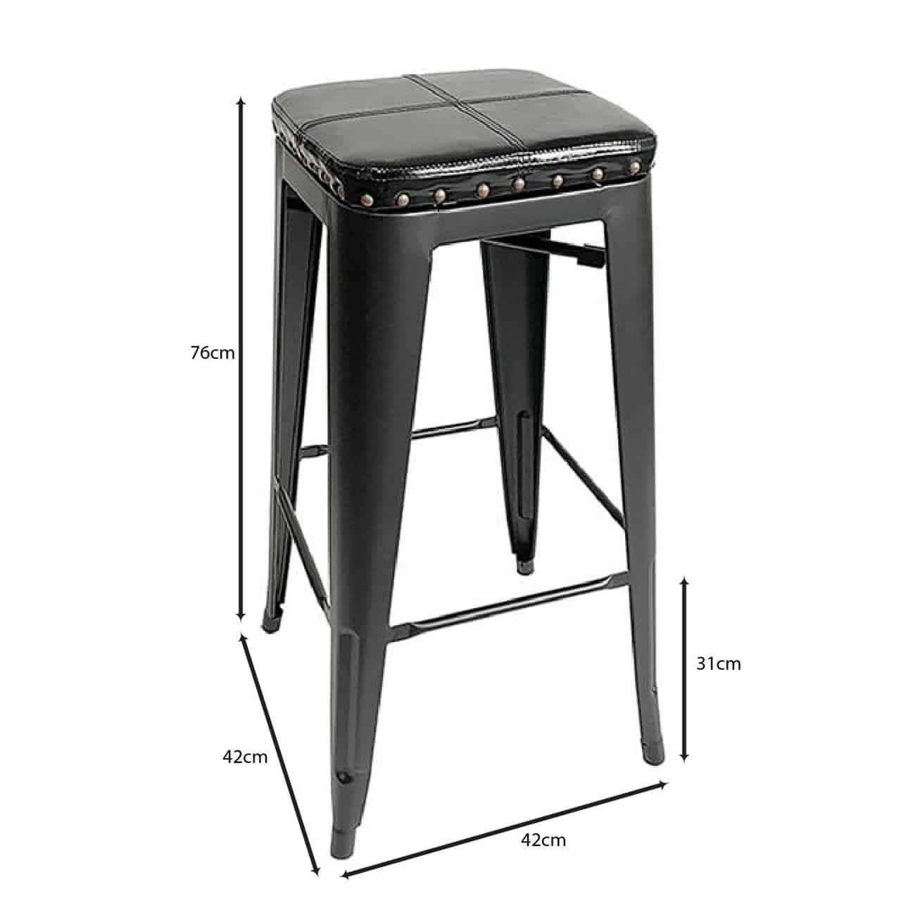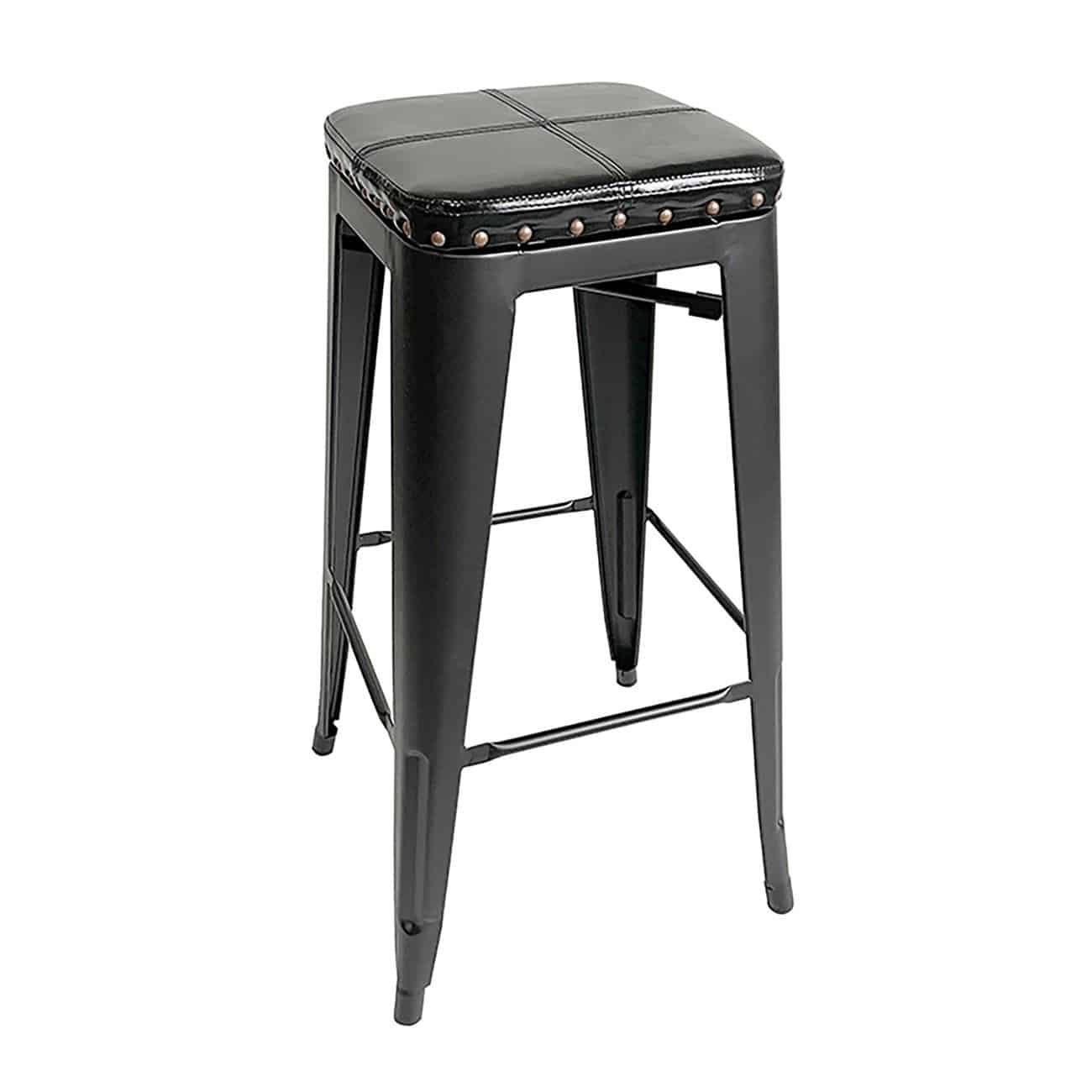 RELIX Σκαμπό Bar Στοιβαζόμενο, Μέταλλο Βαφή Μαύρο, Pu Μαύρο 42x42x76cm