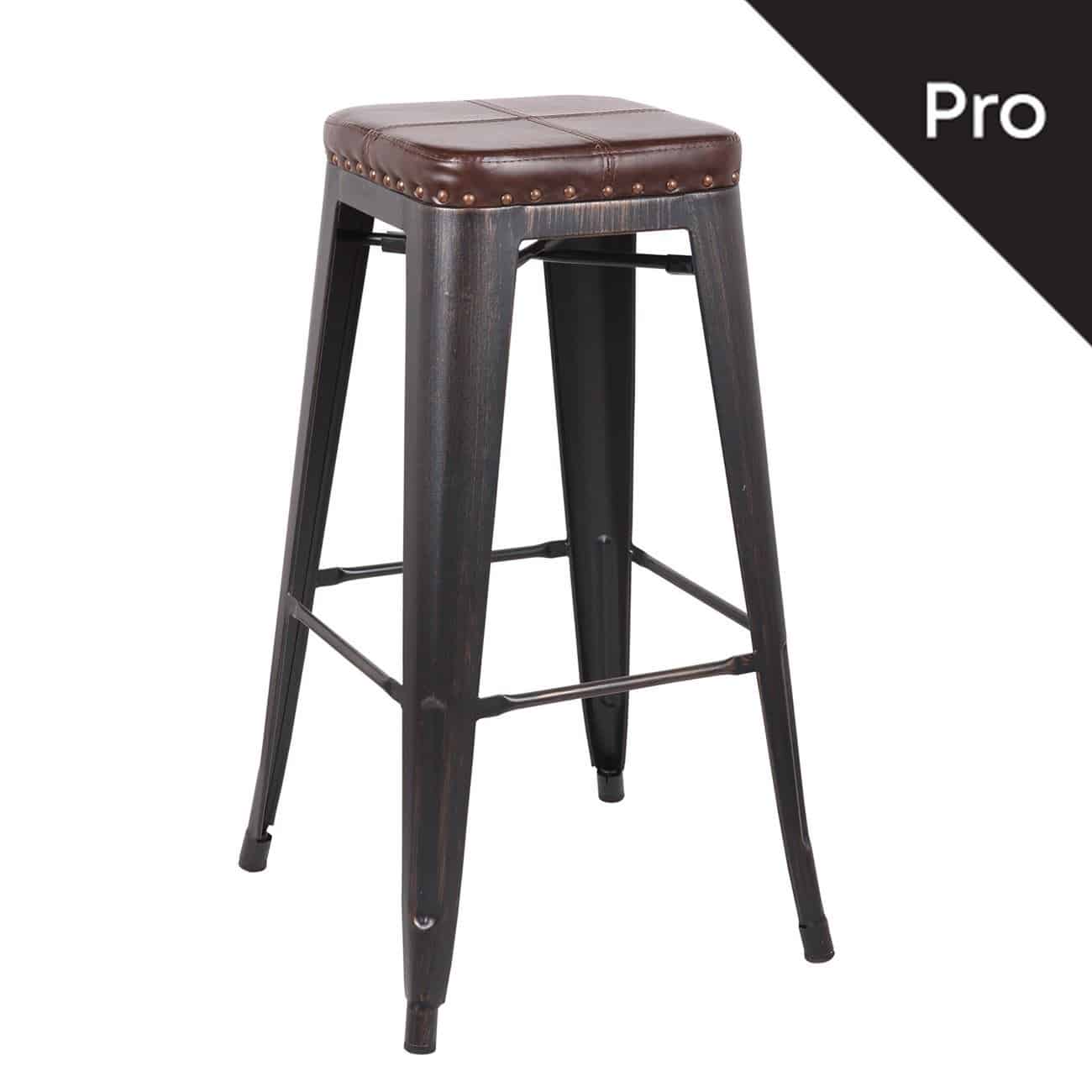 RELIX Σκαμπό Bar-Pro, Στοιβαζόμενο, Μέταλλο Βαφή Antique Black, Pu Σκούρο Καφέ (Ε-00018539)