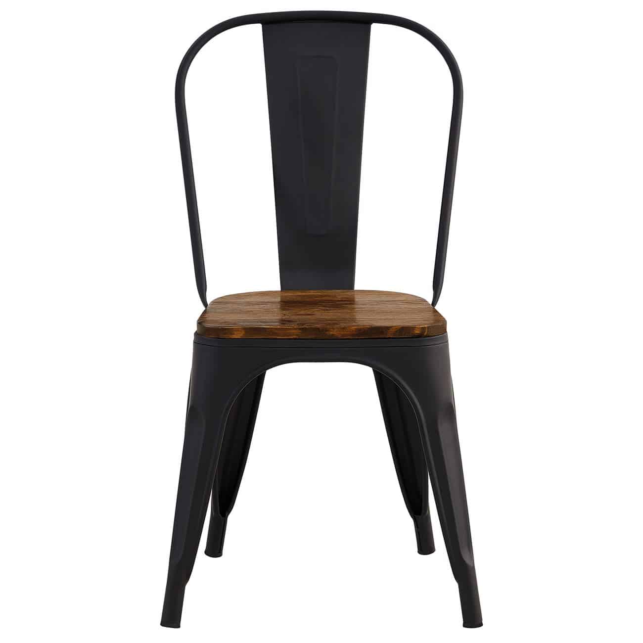 RELIX Wood Καρέκλα Μέταλλο Βαφή Μαύρο Extra Matte, Κάθισμα Dark Oak, Στοιβαζόμενη 45x53x85cm