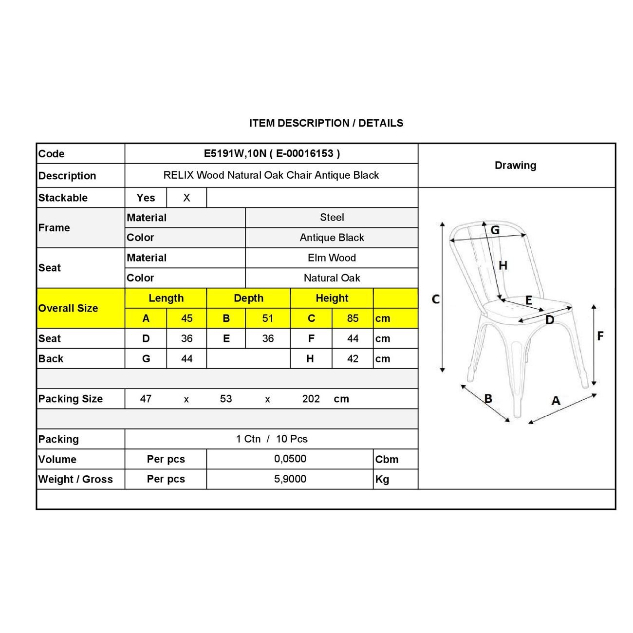 RELIX Wood Καρέκλα-Pro, Μέταλλο Βαφή Antique Black, Απόχρωση Ξύλου Natural Oak (Ε-00016153)