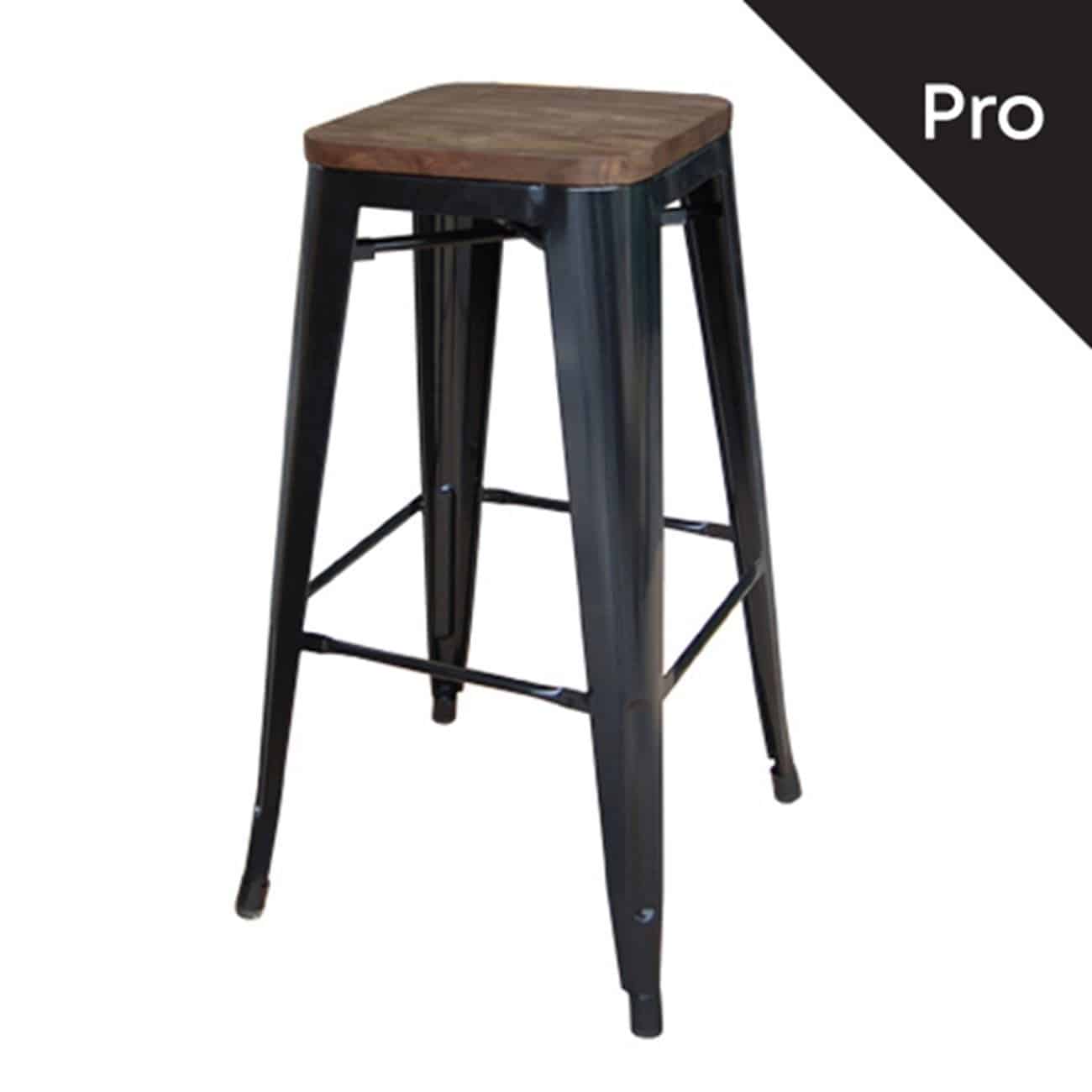 RELIX Wood Σκαμπό Bar-Pro, Στοιβαζόμενο, Μέταλλο Βαφή Μαύρο, Κάθισμα Dark Oak 43×43 H.76cm