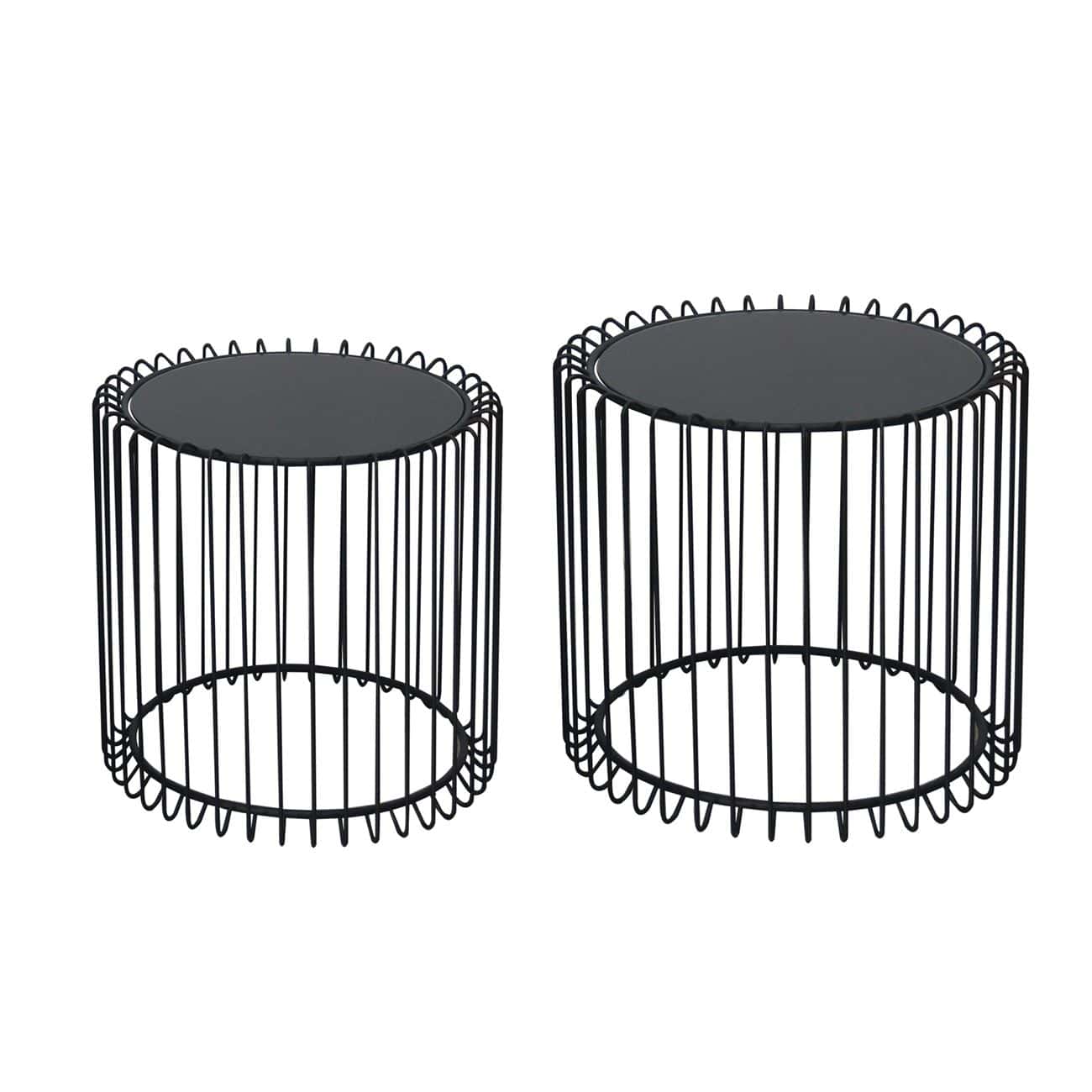 ΕΜ9608 RICO Set-2 Τραπεζάκια Σαλονιού Φ45+Φ50cm Metal Μαύρο/Γυαλί Smoke