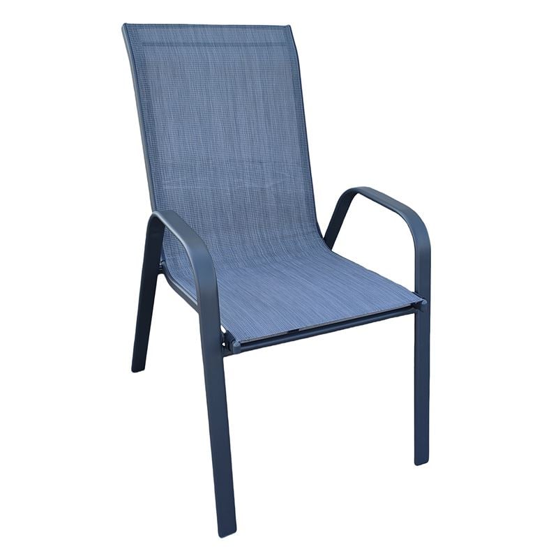 RIO Πολυθρόνα Στοιβαζόμενη Κήπου, Μέταλλο Βαφή Ανθρακί, Textilene Γκρι 54x75x91cm