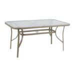 RIO Τραπέζι Κήπου – Βεράντας, Μέταλλο Βαφή Μπεζ, Γυαλί (Ε-00025826)