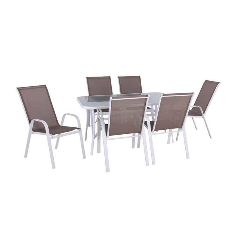 RIO Set Τραπεζαρία Κήπου Άσπρο Μέταλλο,Textilene Cappuccino: Τραπέζι + 6 Πολυθρόνες  (Ε-00024112)