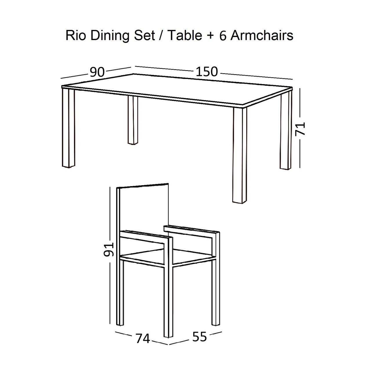 Διαστάσεις: Table:150x90x71 Armch:55x74x91