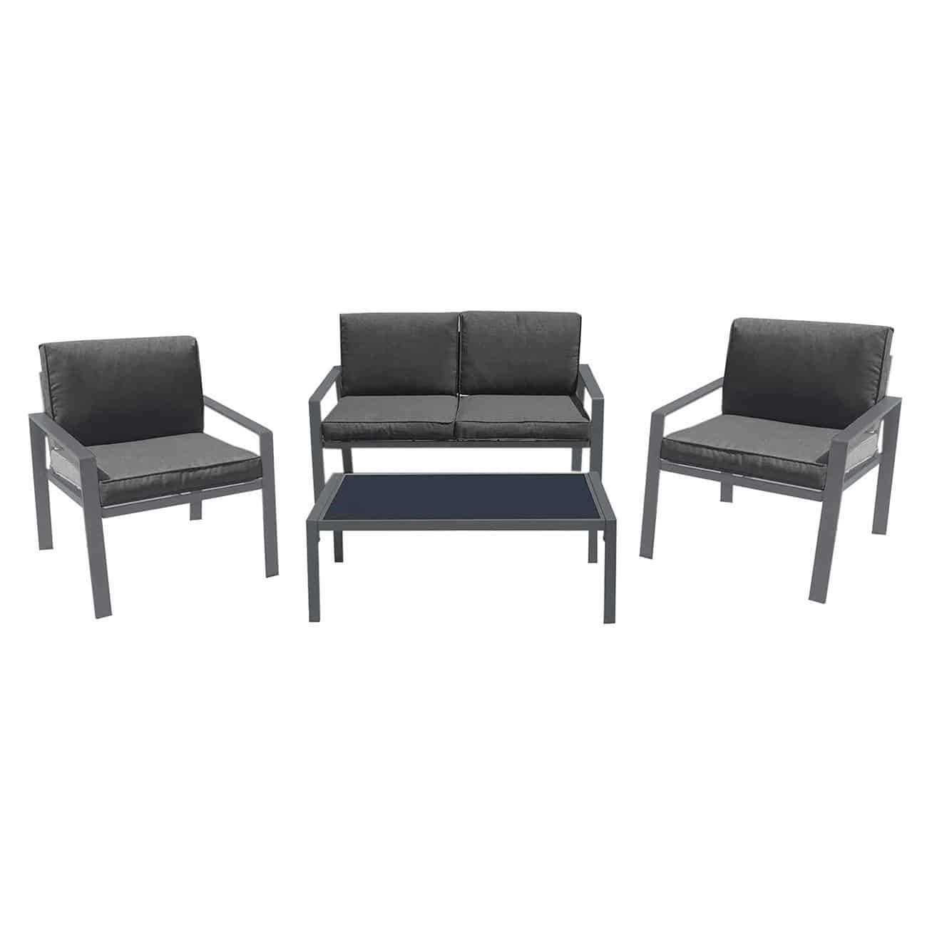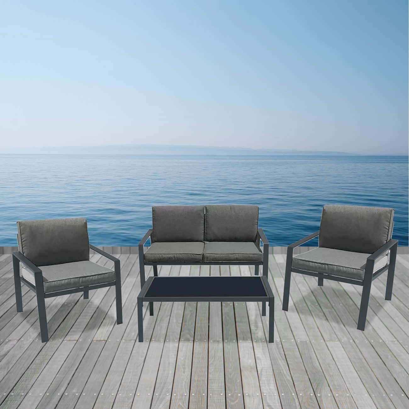 RIVIAN Set Σαλόνι Κήπου 4τεμ, Μέταλλο Βαφή Ανθρακί, Μαξιλάρια Γκρι (Ε-00026029)