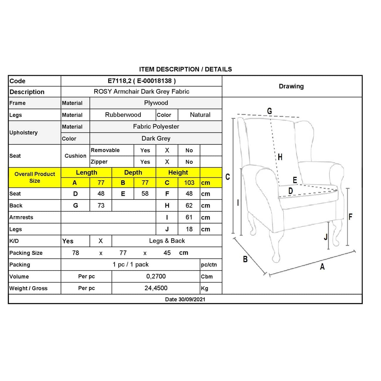 ROSY Πολυθρόνα – Μπερζέρα / Σαλονιού – Καθιστικού