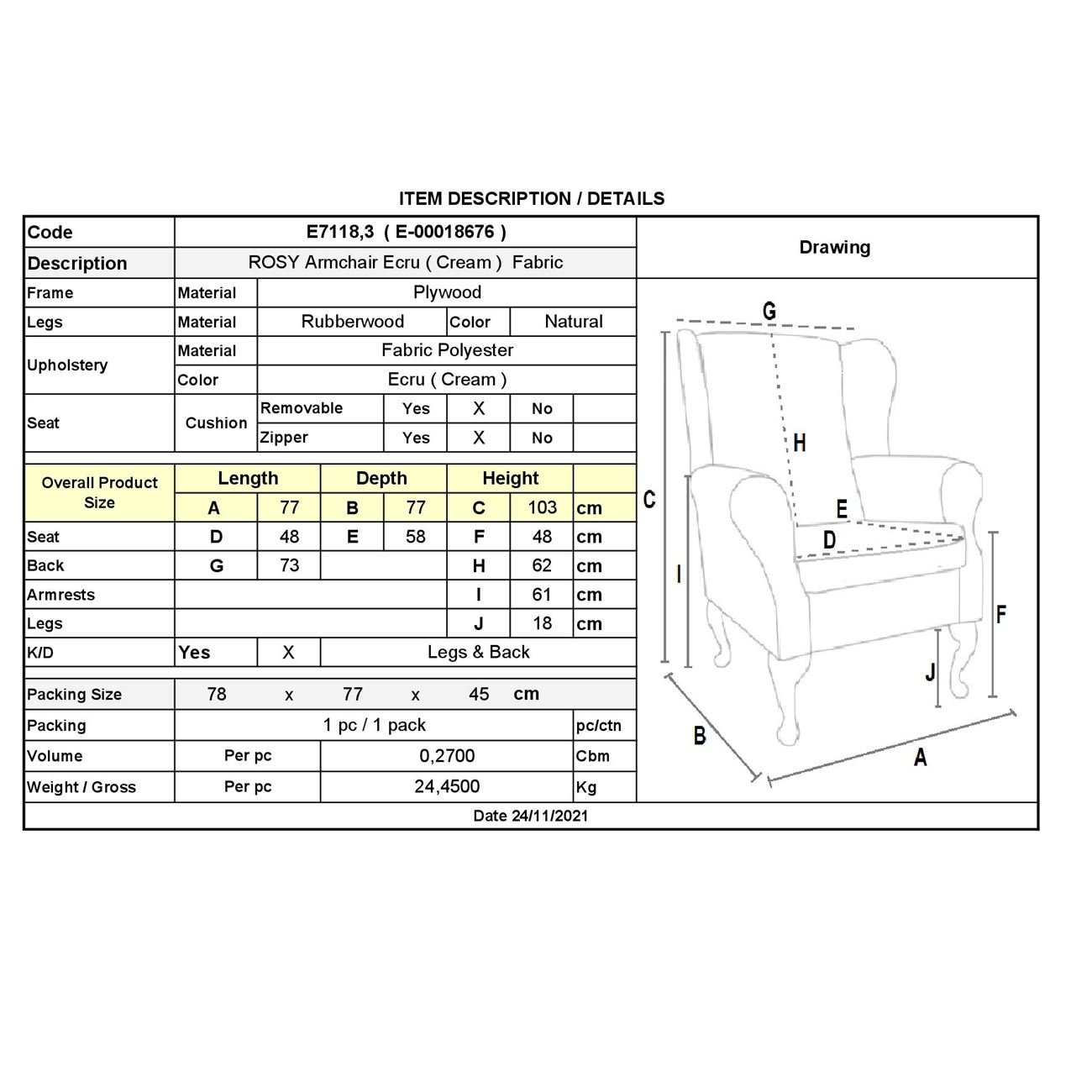 ROSY Πολυθρόνα – Μπερζέρα Φυσικό, Ύφασμα Εκρού (Ε-00018676)