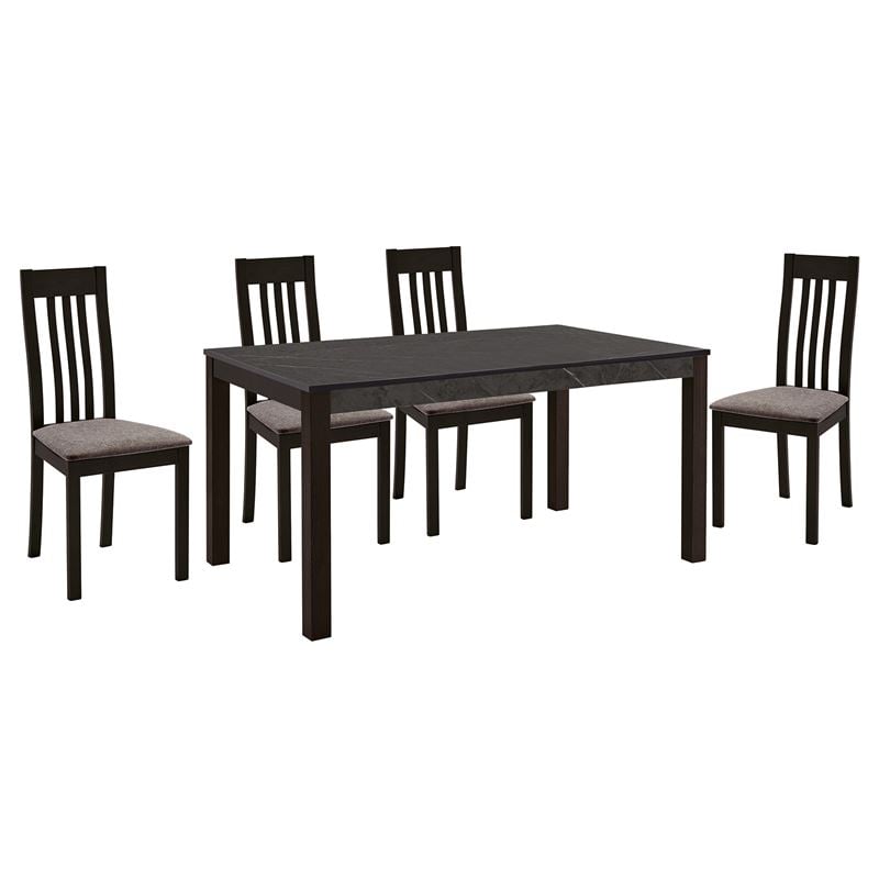 SABINIO Set (1+4) Τραπεζαρίας- Κουζίνας, Σκούρο Καρυδί, Melamine Greystone,Ύφασμα Μπεζ (Ε-00025042)