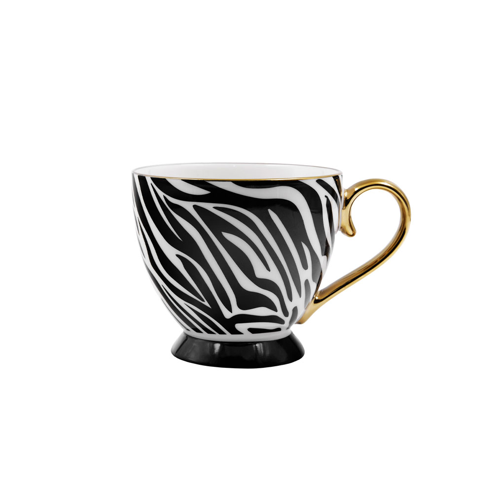 SAFARI ΚΟΥΠΑ 11x11x9cm NEW BONE CHINA ΛΕΥΚΟ ΜΑΥΡΟ ΧΡΥΣΟ