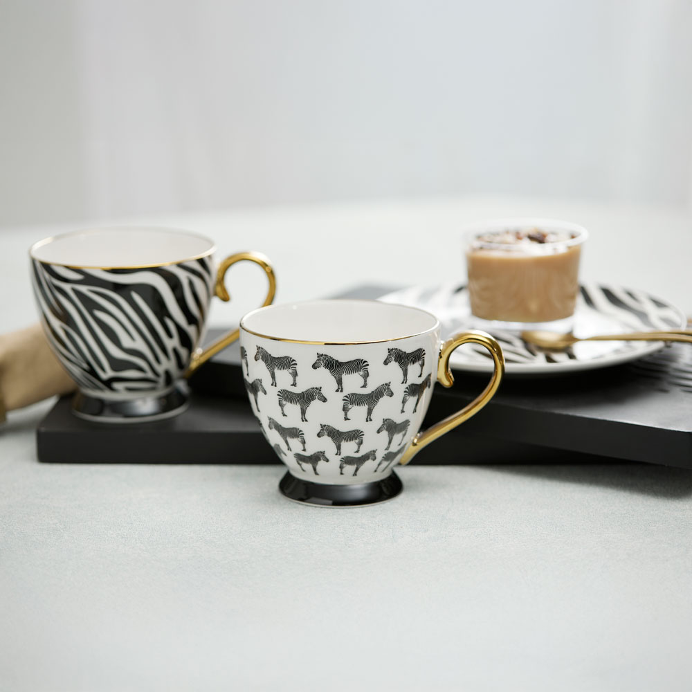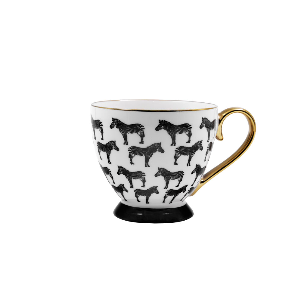 SAFARI ΚΟΥΠΑ 11x11x9cm NEW BONE CHINA ΛΕΥΚΟ ΜΑΥΡΟ ΧΡΥΣΟ