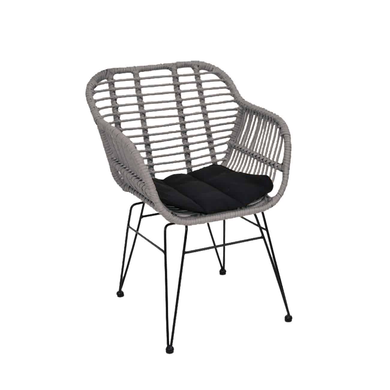 SALSA-W Πολυθρόνα Τραπεζαρίας Κήπου, Μέταλλο Βαφή Μαύρο, Wicker Γκρι, Μαξιλάρι Μαύρο 55x56x82cm