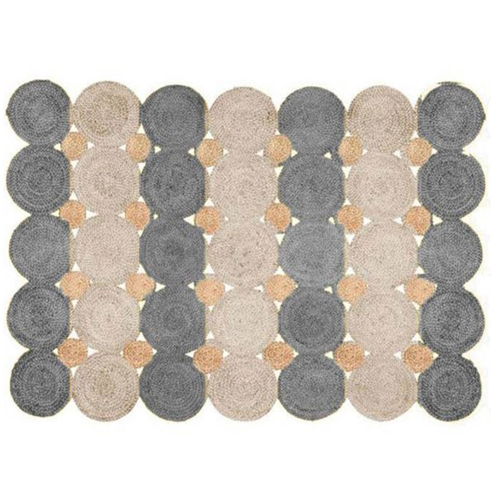 INES ΧΑΛΙ ΣΑΛΟΝΙΟΥ ΣΤΡΟΓΓΥΛΟ 180x180cm ΒΑΜΒΑΚΙ ΦΥΣΙΚΟ ΓΚΡΙ ΓΙΟΥΤΑ 029144