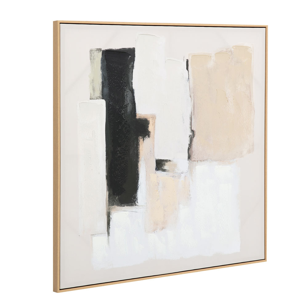 Ο πίνακας SANS FRONT είναι τυπωμένος σε καμβά και τοποθετημένος σε φυσική ξύλινη κορνίζα, που δίνει καθαρότητα και μοντέρνο αποτέλεσμα. Οι μπεζ και μαύρες πινελιές δημιουργούν minimal αισθητική και ηρεμία. Με διαστάσεις 100x100x4 cm, λειτουργεί ως statement piece και γεμίζει άνετα ακόμη και μεγάλους τοίχους. Ιδανικός για σαλόνια, εισόδους σπιτιών, meeting rooms ή σύγχρονους επαγγελματικούς χώρους.