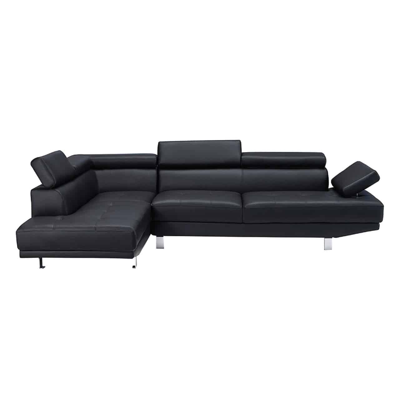 SECTOR Καναπές Σαλονιού Δεξιά Γωνία, Ανακλινόμενα Κεφαλάρια, Pu Μαύρο (Ε-00023070)