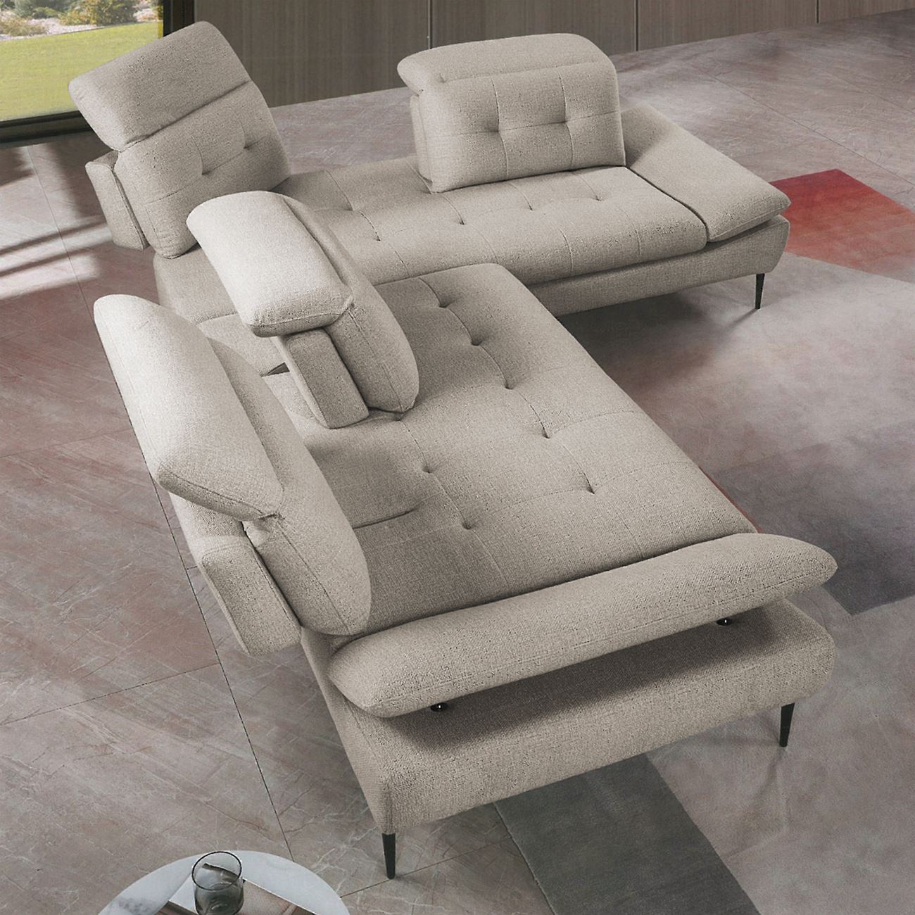 SELBY Καναπές Σαλονιού Αριστερή Γωνία, Ανακλινόμενα Κεφαλάρια, Ύφασμα Μπεζ 303x224x108cm H.88/106cm