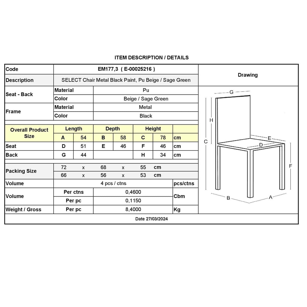 SELECT Καρέκλα Τραπεζαρίας- Κουζίνας, Μέταλλο Βαφή Μαύρο, Pu Μπεζ-Sage Green 56x54x78cm