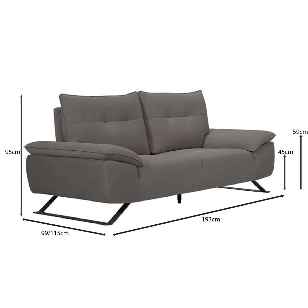 SELENA Καναπές 2-θέσιος Σαλονιού – Καθιστικού, Ύφασμα Γκρι, Μεταφερόμενη πλάτη 193×99/115x95cm