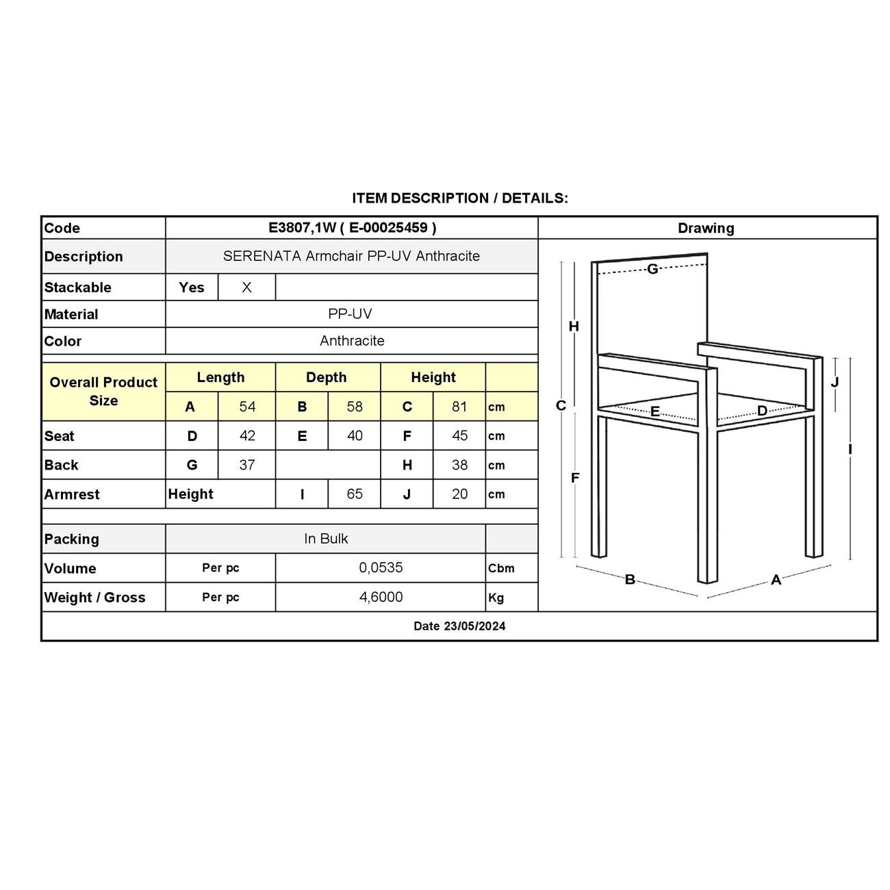 Ε3807,1W SERENATA Πολυθρόνα PP-UV Ανθρακί , Στοιβαζόμενη