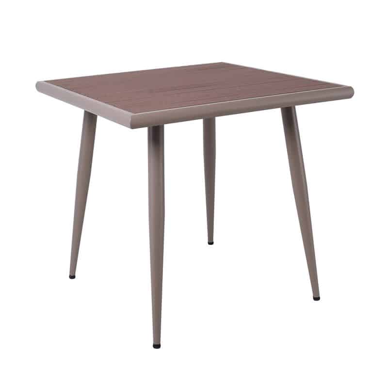 SERRANO Τραπέζι Κήπου-Βεράντας Μέταλλο Βαφή Sand Beige, Polywood Καρυδί 80x80x74cm