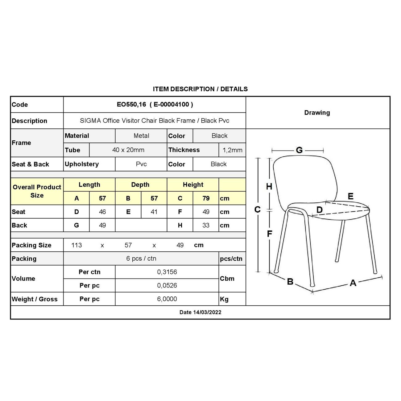 SIGMA Καρέκλα-Pro Γραφείου Επισκέπτη Στοιβαζόμενη, Μέταλλο Βαφή Μαύρο, PVC Μαύρο 57x57x79cm Tube: 40×20/1.2mm