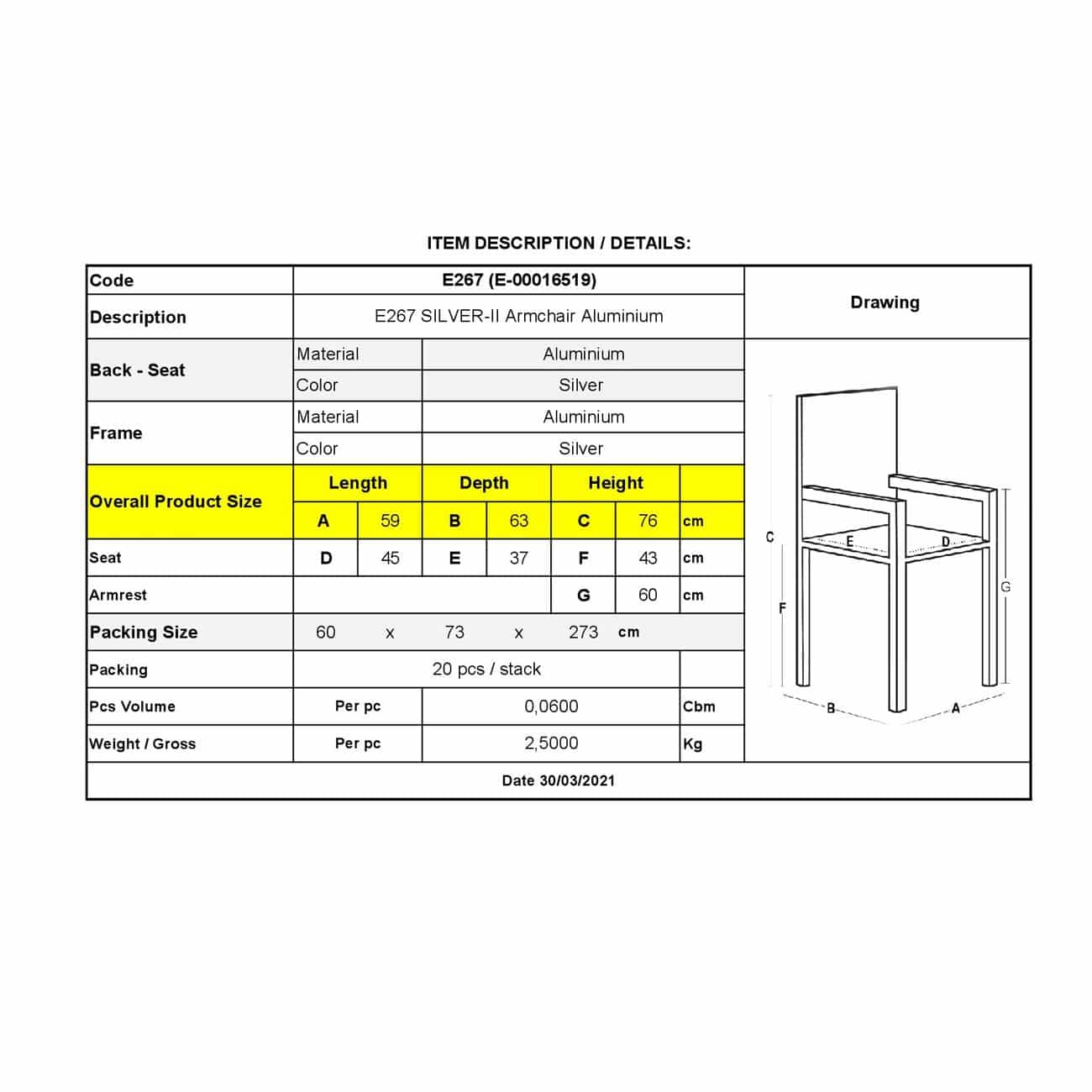 Ε267 SILVER-II Πολυθρόνα Αλουμινίου
