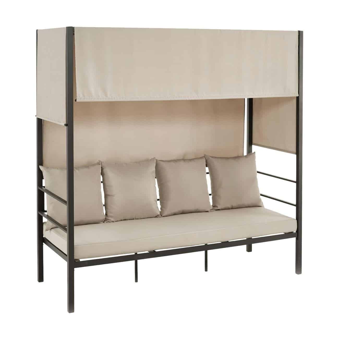 SKY Καναπές – Κρεβάτι Κήπου Εξωτερικού Χώρου, Μέταλλο Βαφή Ανθρακί, Ύφασμα Εκρού 200x80x200cm