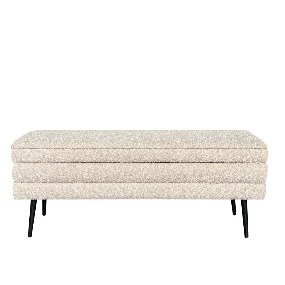 Το σκαμπό Slices συνδυάζει κομψότητα και πρακτικότητα, προσφέροντας άφθονο αποθηκευτικό χώρο. Κατασκευασμένο με σκελετό από plywood και επενδυμένο με ύφασμα μπουκλέ σε latte απόχρωση, το σκαμπό αυτό προσφέρει άνεση και μία σύγχρονη αίσθηση φρεσκάδας στον χώρο σας. Τα μαύρα μεταλλικά πόδια του προσδίδουν μοντέρνα και ελκυστική όψη, κάνοντάς το ιδανικό για κάθε σύγχρονο σαλόνι, υπνοδωμάτιο ή χώρο. Το σκαμπό Slices είναι η ιδανική επιλογή για όσους επιθυμούν ένα κομμάτι επίπλου που συνδυάζει λειτουργικότητα με μοντέρνα αισθητική.