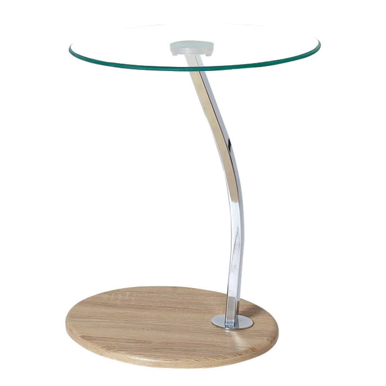 SOLID Τραπεζάκι LapTop Χρώμιο, Γυαλί Clear Απόχρωση Σημύδας Φ45 H.60cm