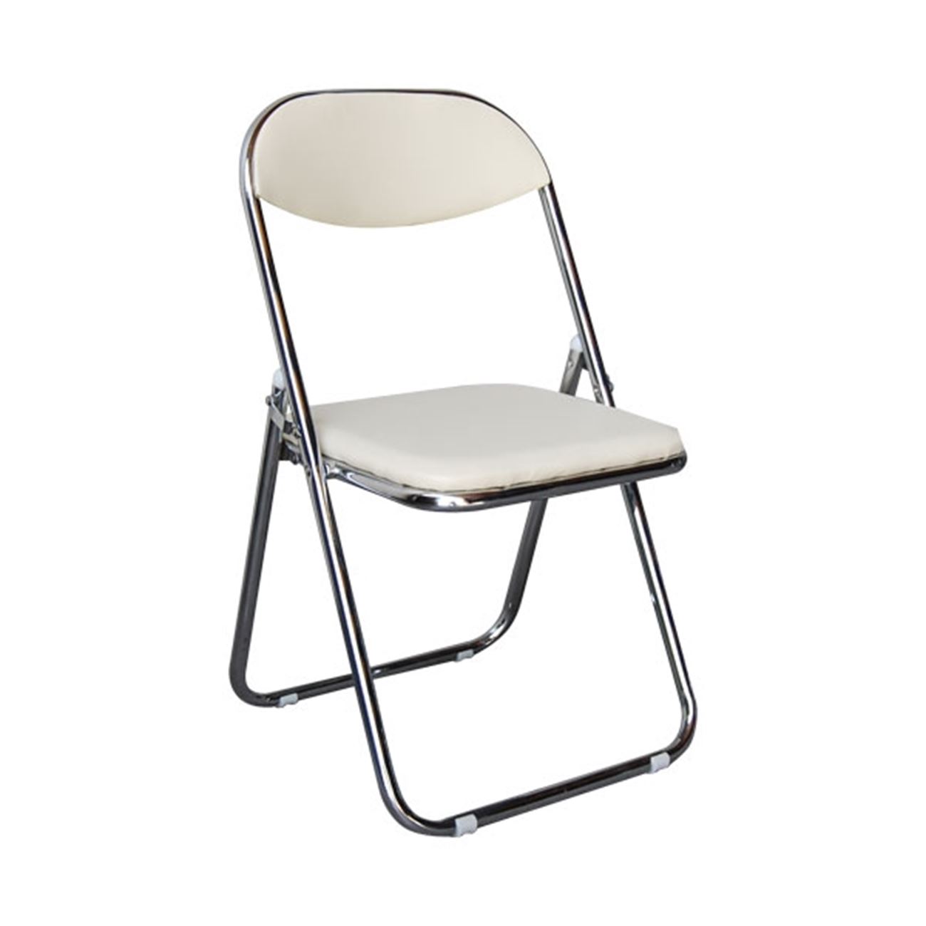 STAR Καρέκλα Πτυσσόμενη Μέταλλο Χρώμιο, Pu Εκρού 45x49x80cm