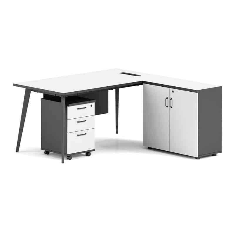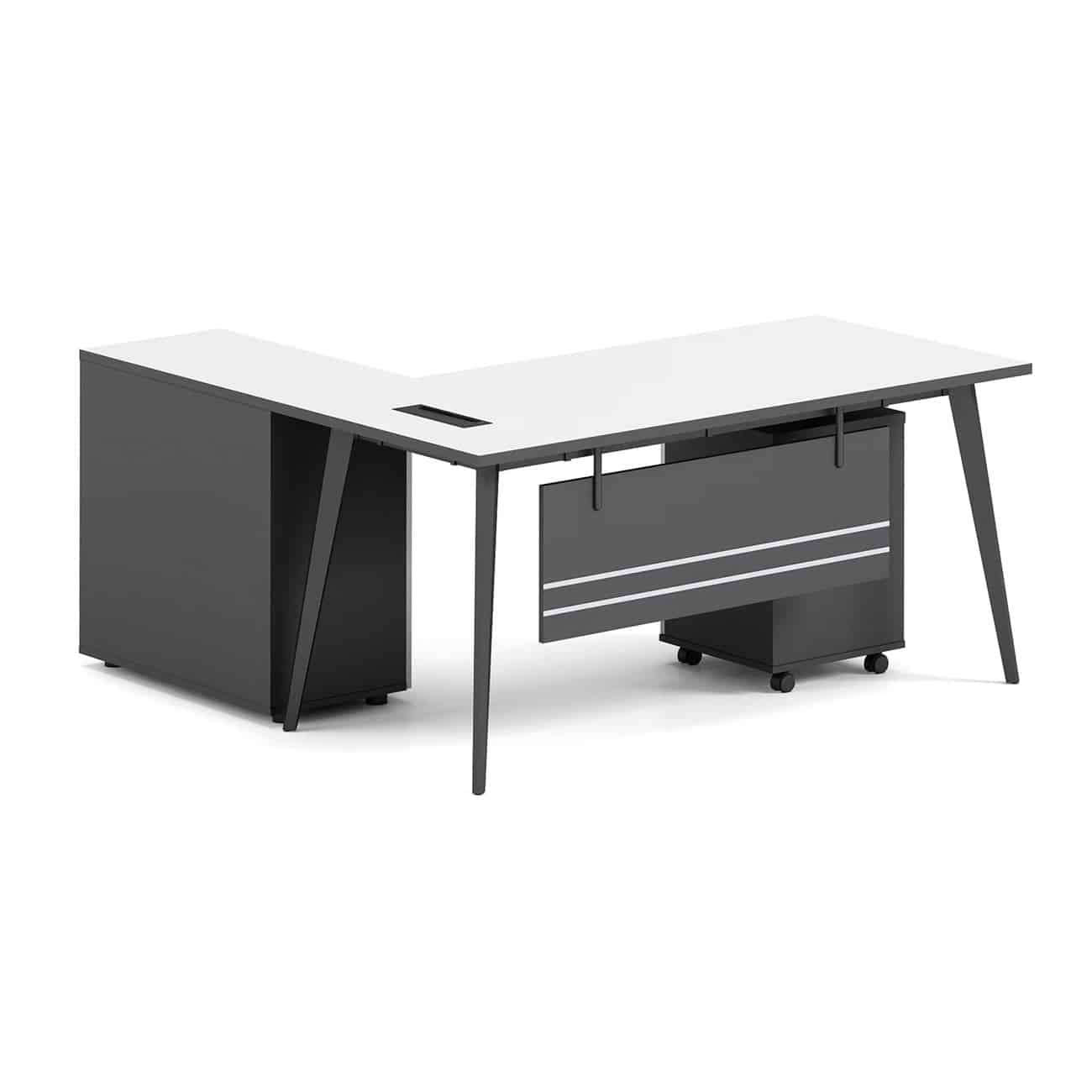 STATUS Γραφείο Γωνία Αναστρέψιμη, Απόχρωση Grey, Επιφάνεια Απόχρωση Άσπρο 180×80/40x75cm