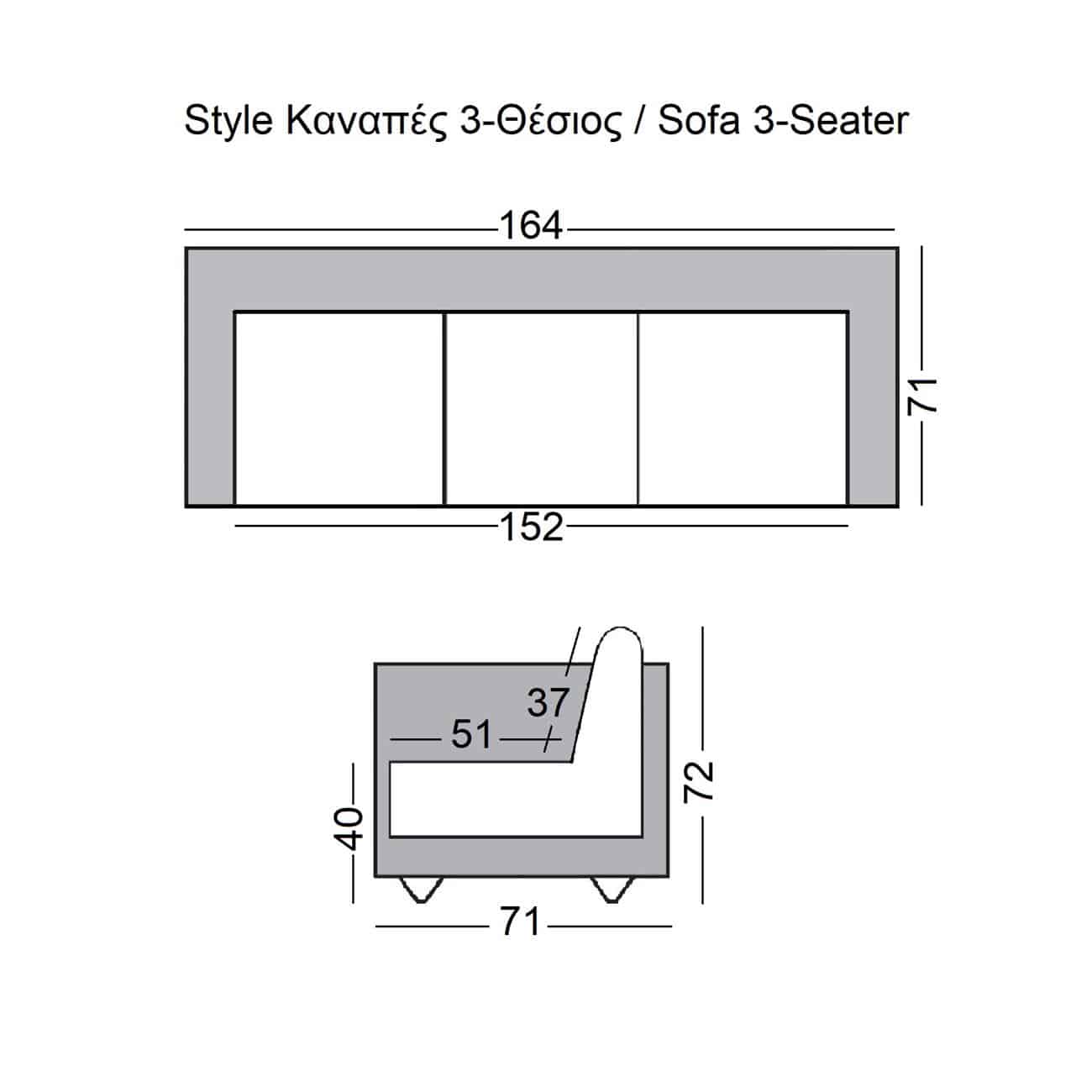 STYLE Καναπές Σαλονιού Καθιστικού 3Θέσιος, Pu Άσπρο K/D 164x71x72cm