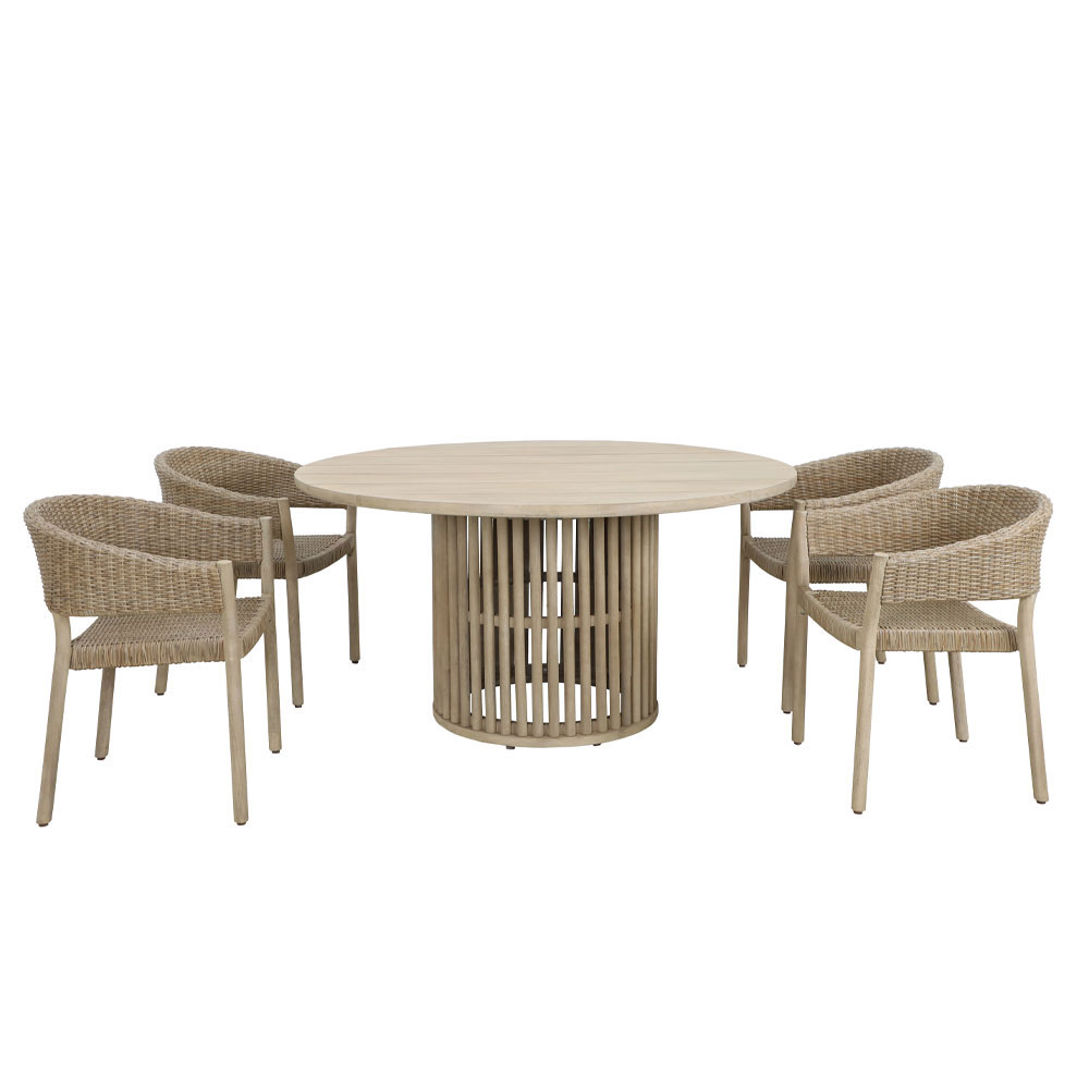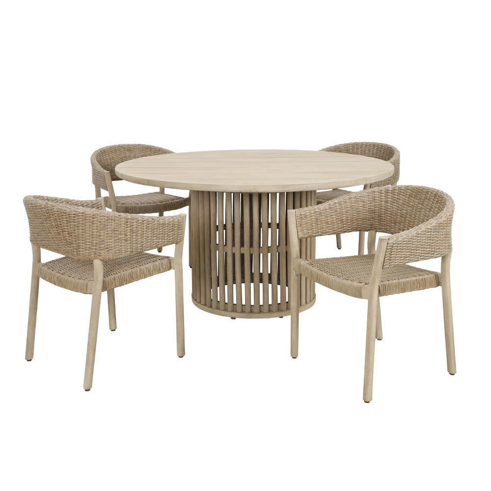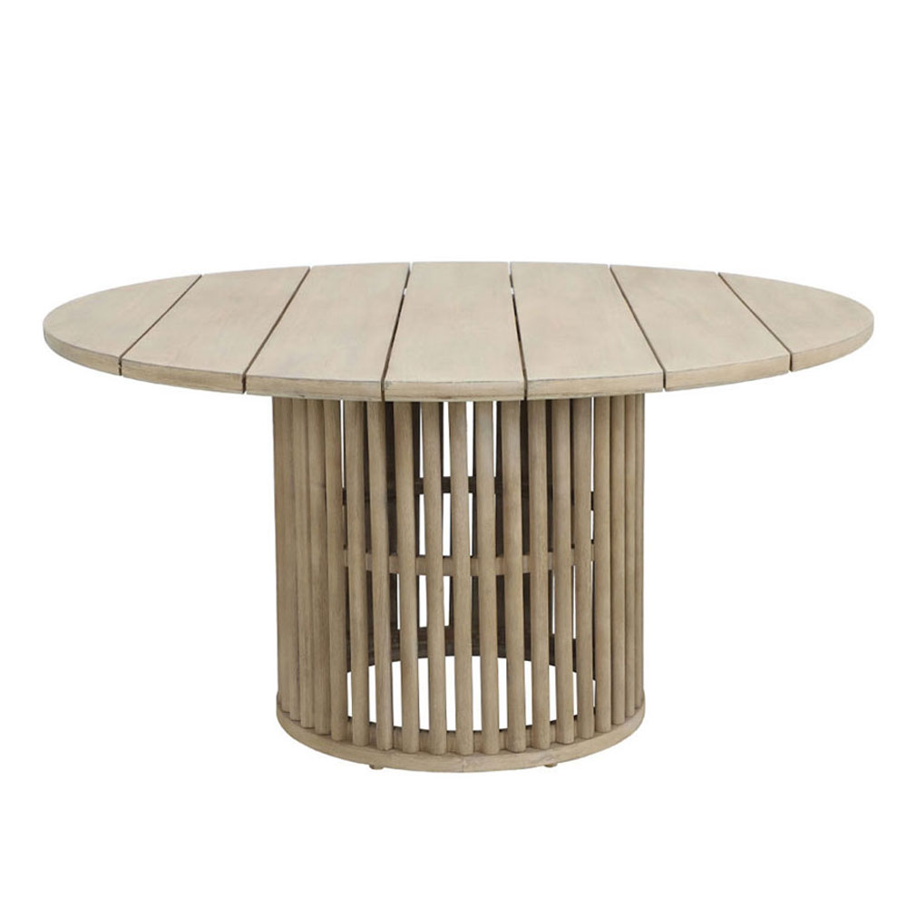 Το τραπέζι Sumatra αποτελεί μια επιβλητική επιλογή που συνδυάζει την κομψότητα με τη φυσική αισθητική. Κατασκευασμένο από ξύλο ακακίας σε φυσική απόχρωση, διαθέτει μοναδικό σχεδιασμό με κυκλική επιφάνεια και στιβαρή βάση από κάθετες ξύλινες ράβδους, που δημιουργούν ένα εντυπωσιακό γεωμετρικό αποτέλεσμα. Η διαχρονική του εμφάνιση και η υψηλή ποιότητα κατασκευής το καθιστούν ιδανικό τόσο για εσωτερικούς όσο και για εξωτερικούς χώρους, προσφέροντας ζεστασιά και στυλ σε κάθε τραπεζαρία.