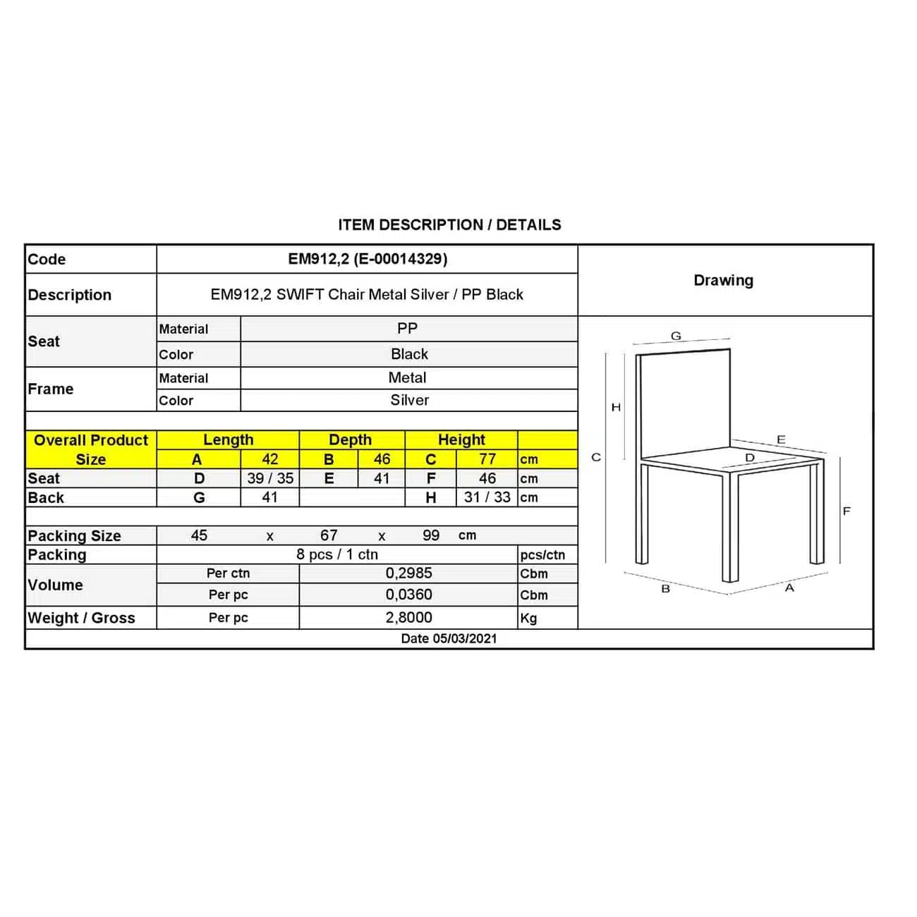 ΕΜ912,2 SWIFT Καρέκλα PP Μαύρο (Βαφή Silver)