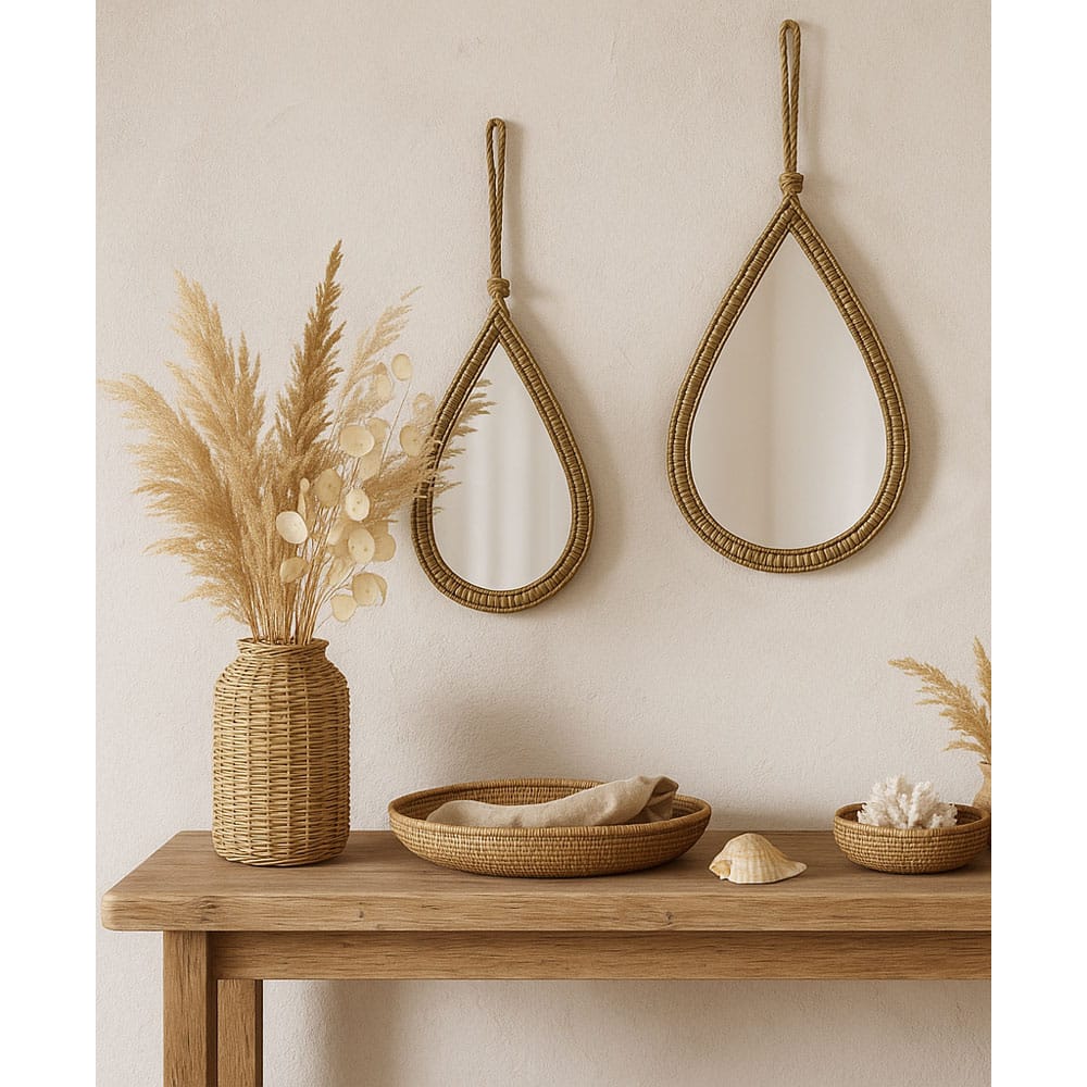 Ο καθρέπτης Tear αποτελεί έναν κομψό συνδυασμό φυσικής ομορφιάς και πρωτότυπου σχεδιασμού. Το πλαίσιο του, κατασκευασμένο από φυσικό ξύλο, δημιουργεί μια ζεστή και φιλόξενη αίσθηση, ενώ το σχήμα δάκρυ ενισχύει την μοναδικότητα και την διαχρονική αισθητική του. Ιδανικός για μοντέρνους και bohemian χώρους, ο καθρέπτης Tear προσφέρει μια διακριτική κομψότητα που αναβαθμίζει κάθε γωνιά του σπιτιού. Ένα ιδιαίτερο διακοσμητικό στοιχείο που συνδυάζει την πρακτικότητα με την καλλιτεχνική έκφραση.