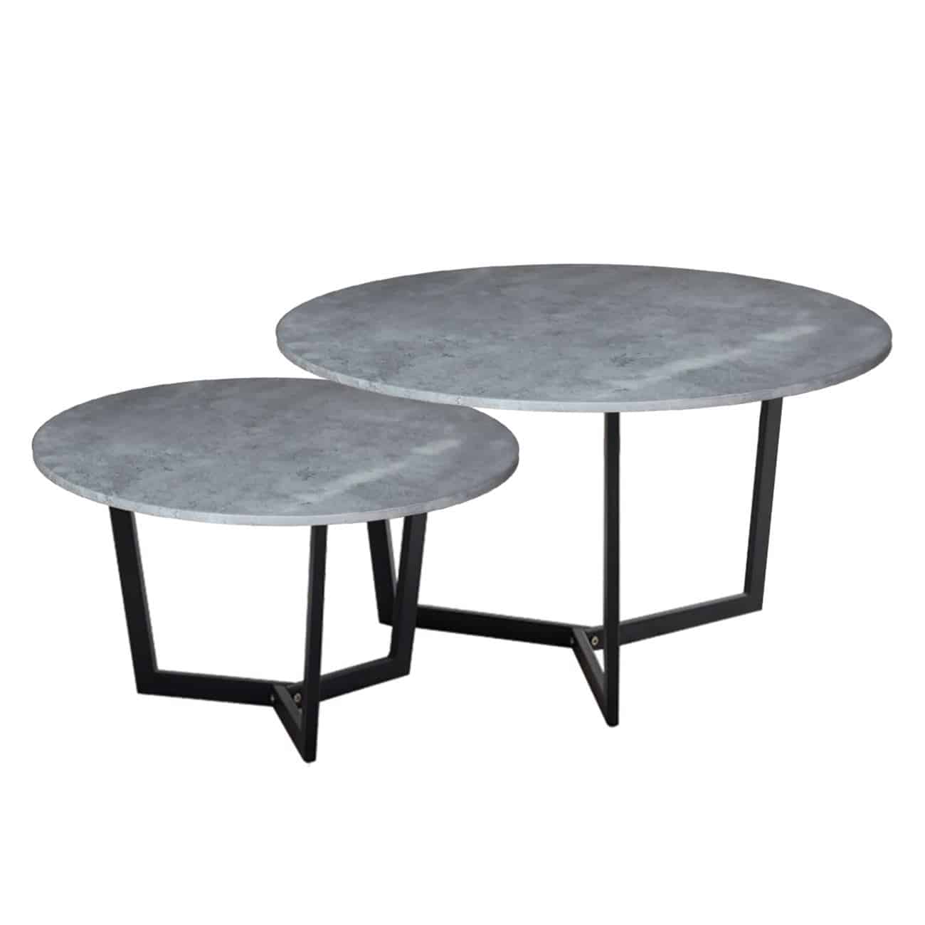 ΕΜ9604,S2 TEDDY Set-2 Τραπ.Σαλονιού Φ80cm+Φ60cm Μεταλ.Μαύρο/Cement