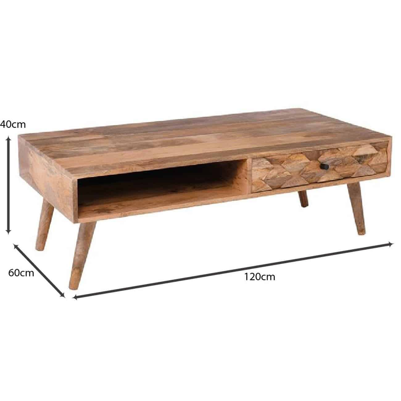 TEKA-W Τραπεζάκι Σαλονιού Καθιστικού, Ξύλο Mango Φυσικό 120x60x40cm